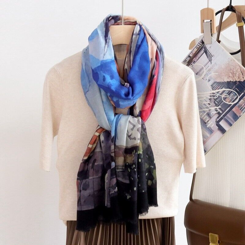 Closet Print 18 Momme Twill Silk Wrap Scarf Double Face Shawl 35" Gray/Beige