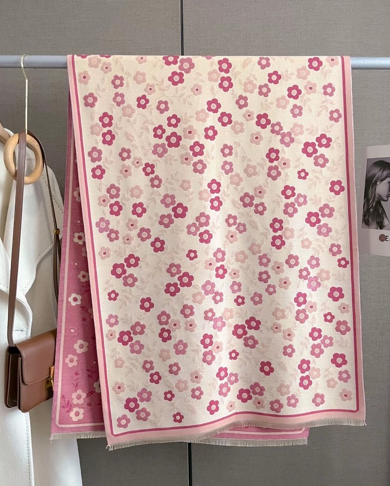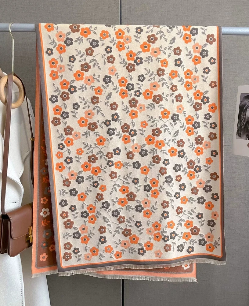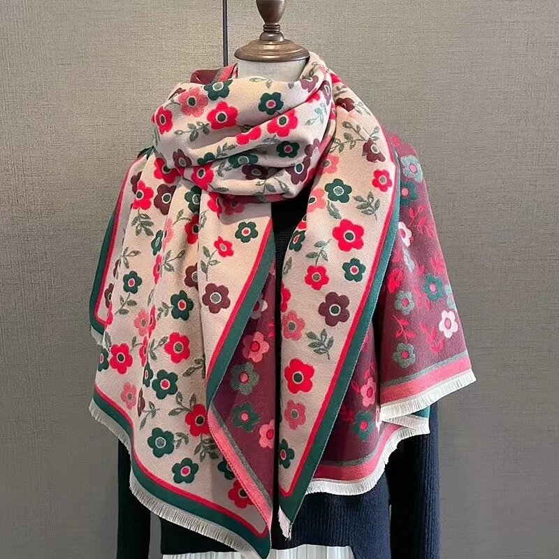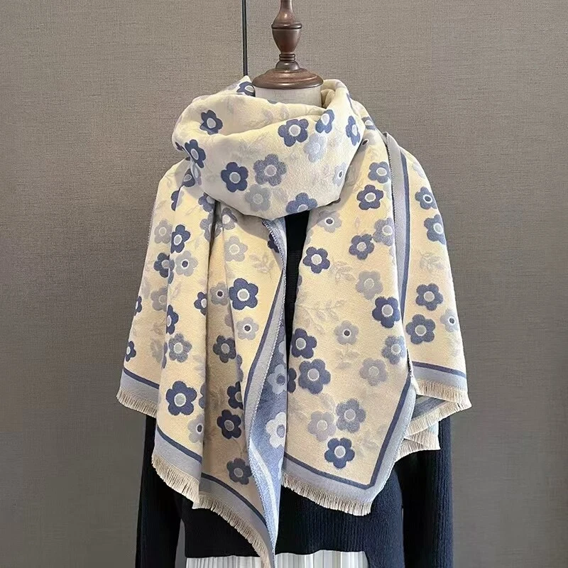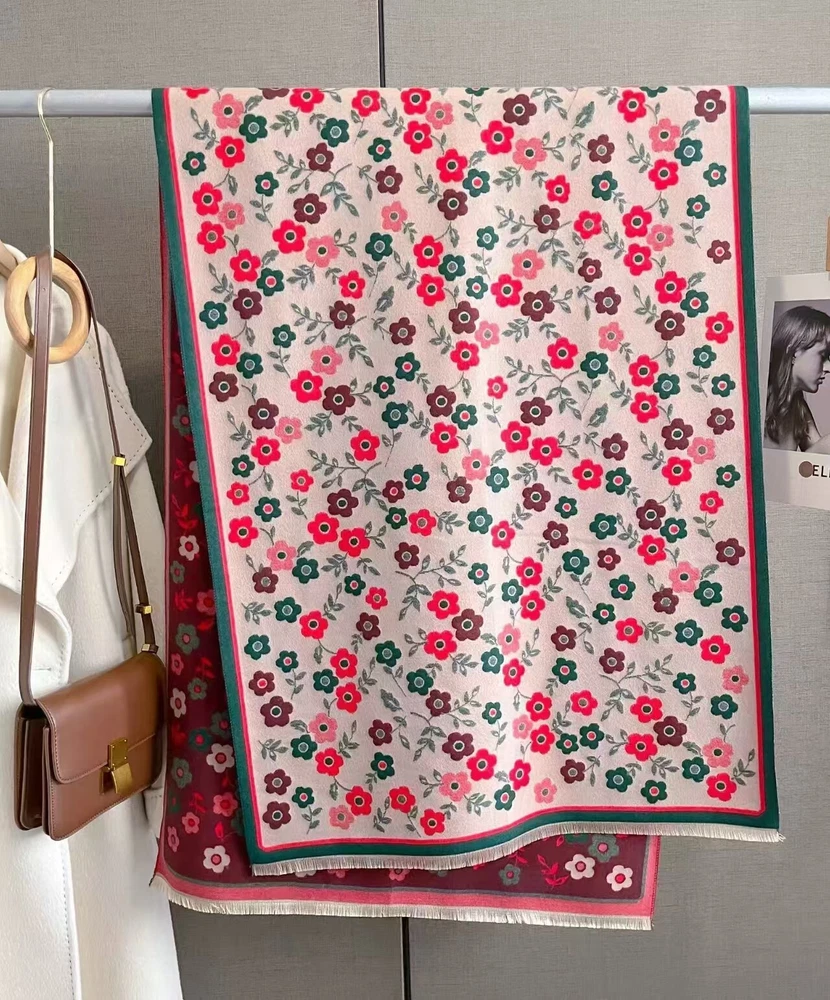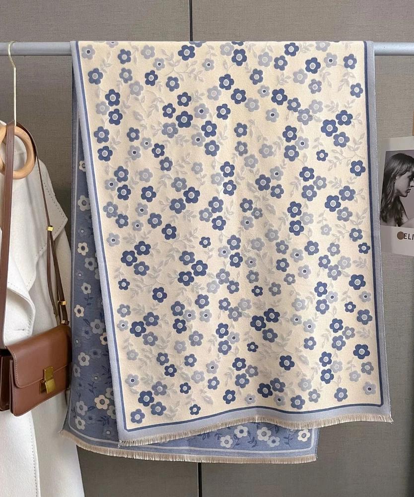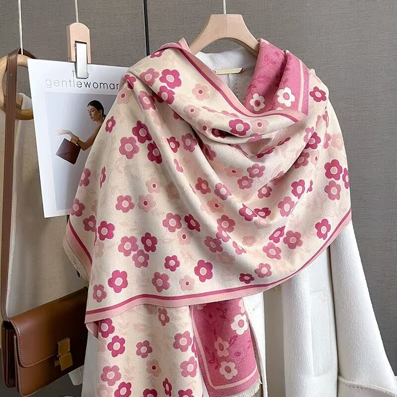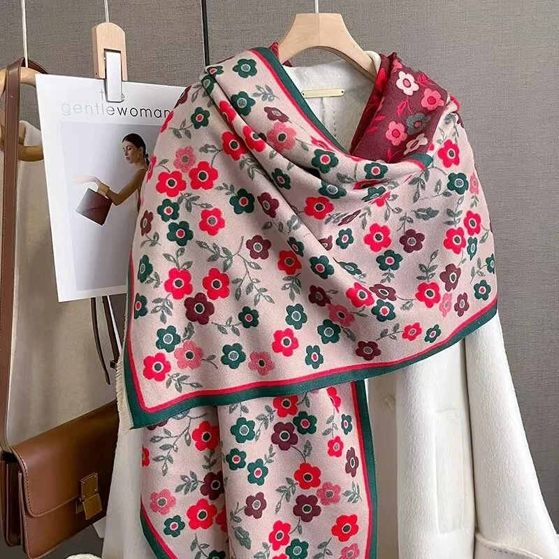 Cashmere-Like Winter Scarf Camellia Print Large Shawl Stole 185x65cm