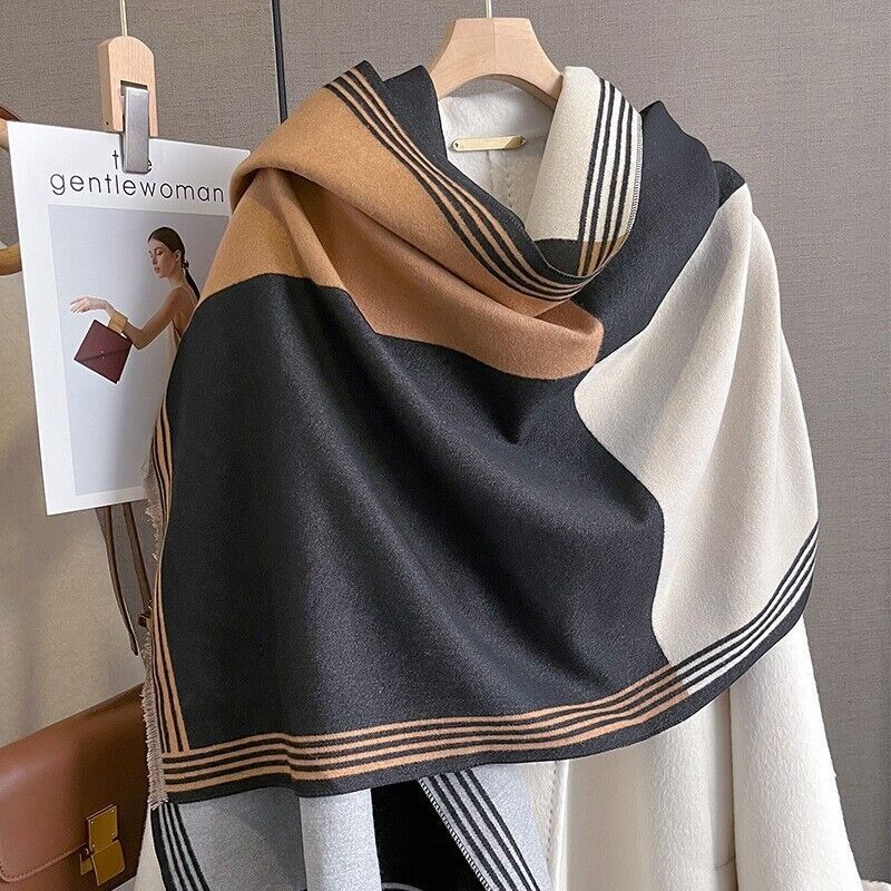 Cashmere-Style Oversized Checked Winter Scarf for Women 185x65cm