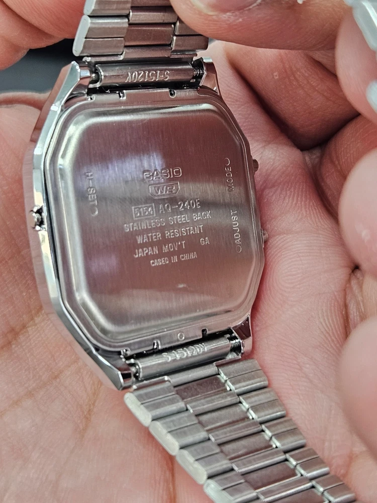Manufacturer Warranty: 1 Year Handedness: Left Band/Strap: Bracelet Case Thickness: 8 mm With Manual/Booklet: Yes Bezel Type: Fixed Model: Casio Vintage Band Color: Silver With Papers: Yes With Service Records: No Indices: Stick Indexes Brand: Casio Bezel Color: Silver Type: Wristwatch Department: Unisex Adults Water Resistance: 30 m (3 ATM) With Original Box/Packaging: Yes Case Color: Silver Style: Casual Reference Number: AQ240E3A Number of Jewels: 21 Jewels Case Material: Resin, Stainless Steel Features: Alarm, Water-Resistant Year Manufactured: 2020-Now Handmade: No Customized: No Band Material: Stainless Steel Display: Analog & Digital Movement: Quartz Dial Color: Blue Case Finish: Polished Watch Shape: Square
