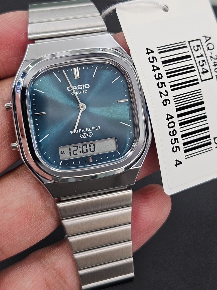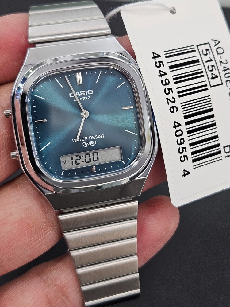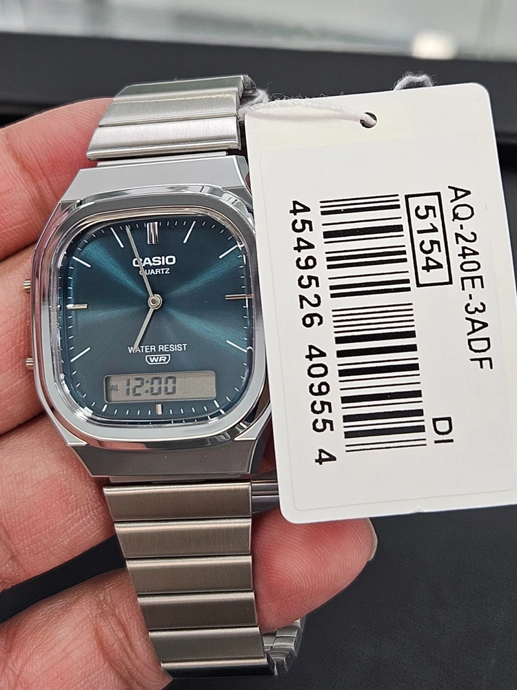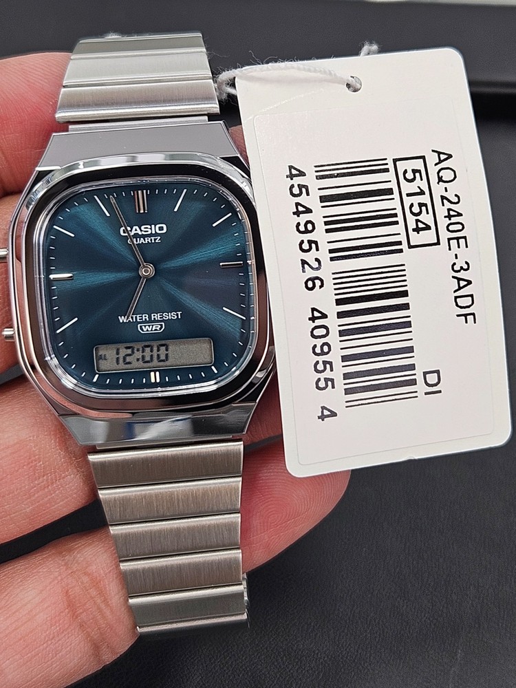 100% ORIGINAL CASIO WATCH – AUTHENTIC GUARANTEED This listing is for a brand-new Casio AQ-240E-3A analog-digital quartz watch featuring a blue sunburst dial and stainless steel bracelet. ✔ Factory original 🔹 Watch Details: Brand: Casio Model: AQ-240E-3A (AQ-240E-3ADF) Movement: Quartz Display: Analog + Digital Dial Color: Blue Case Shape: Square Case Material: Resin with chrome finish Bracelet Material: Stainless Steel Water Resistance: Water Resistant (WR) Functions: Time, Date, Alarm, Stopwatch Gender: Unisex Condition: Brand New with Tags