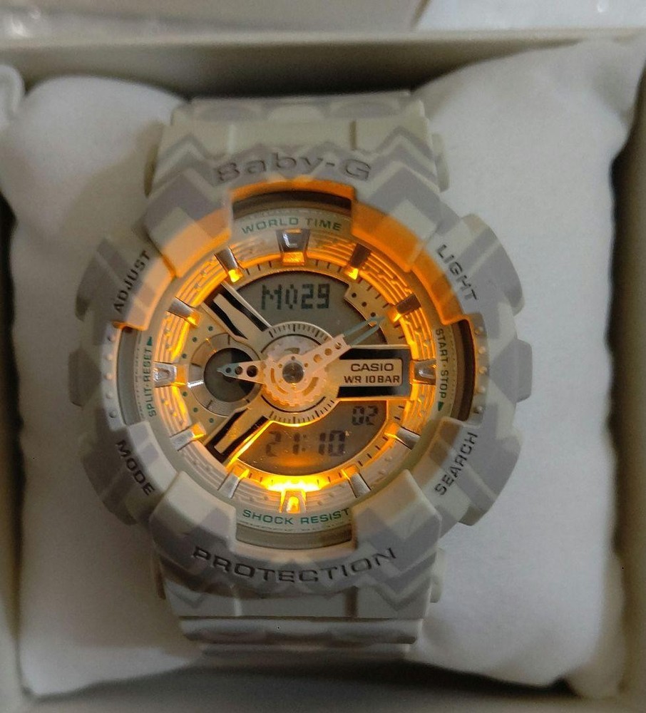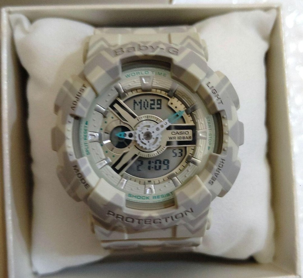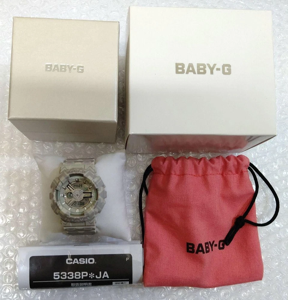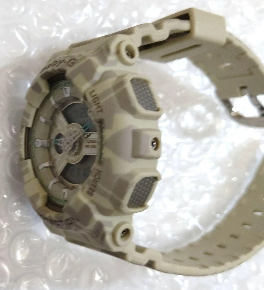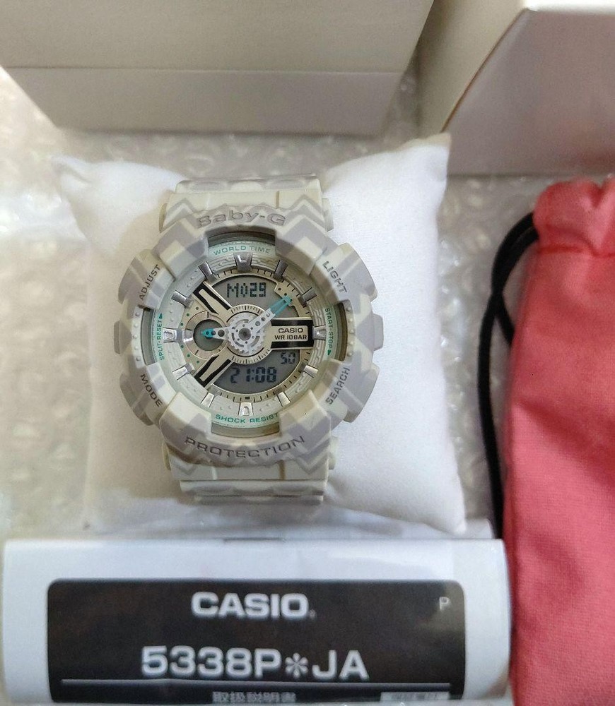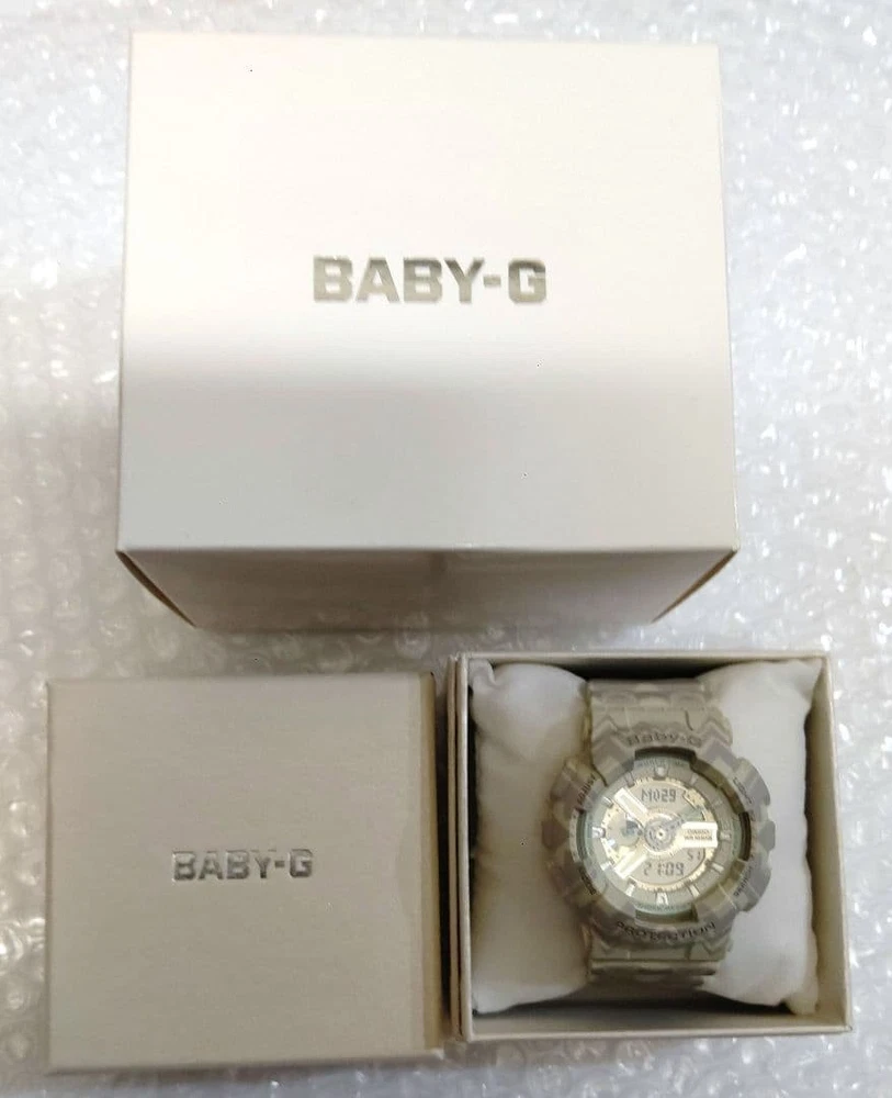 Casio Baby-G BA-110 Tribal Pattern Beige Analog-Digital Watch, Near Mint Key Features ## Product Title: Casio Baby-G BA-110 Tribal Pattern Beige Analog-Digital Watch, Near Mint, Unisex, Rare Color ## Product Description: This is a near-mint condition Casio Baby-G BA-110 wristwatch featuring a distinctive tribal pattern in beige, combining both analog and digital displays. Designed for both women and men, this stylish and functional timepiece offers a compact size suitable for those who prefer smaller watches, yet versatile enough for larger wrist sizes. ### Key Features and Benefits: - Unique tribal pattern in beige, a rare and collectible color - Unisex design suitable for kids, women, and men - Combines analog and digital timekeeping for versatile use - Equipped with backlight, timer, alarm, and stopwatch functions - Digital display shows date, day, and time - Comes with a dedicated Baby-G pouch, original box, and instruction manual - Fully tested and confirmed to be in working order ### Technical Specifications: - Brand: Casio - Model: BA-110TP-8AJF - Application Attributes: Analog-Digital Watch - Movement Type: Quartz - Case Size: Small (Baby-G size, suitable for those preferring a smaller watch) - Band Material: Resin (typical for Baby-G models) - Case Color: Beige with tribal pattern - Condition: Near Mint, used only a few times, minimal signs of wear - Additional Features: Backlight, Timer, Alarm, Stopwatch, Date and Day display - Included: Original Baby-G pouch, box, and instruction manual - Rare color variant, highly sought after by collectors ### Product Condition: This watch is in excellent condition, classified as "Near Mint" with minimal signs of use. The packaging shows slight aging and minor scratches, consistent with storage over time. It has been fully tested and confirmed to operate normally, including the backlight and all functions. ### Main Selling Points: - Rare tribal pattern beige color, highly collectible - Versatile unisex size suitable for various wrist sizes - Fully functional with multiple features including timer, alarm, and stopwatch - Comes with original packaging and accessories - Excellent condition, almost unused ### Additional Information: This Casio Baby-G model is a stylish and practical accessory, perfect for everyday wear or collection. Its unique tribal design and reliable functionality make it a standout piece for watch enthusiasts and collectors alike. --- **Note:** This item ships from Akita Prefecture via Merc Specifications Brand CASIO Country Japan Product Description eBay Item Description Casio Baby-G BA-110 Ana-Digi Watch Tribal Pattern Beige Good Condition Shipping Using standard shipping (Japan Post, FedEx or DHL), an estimated delivery date will be around 5-14 days after shipment. We send it with your tracking number, so that you can track the delivery status anytime. Shipping is only available to addresses registered on eBay. If you would like to send an item to a different address, please update your shipping address on eBay before you complete your purchase. Company Profile Our store is located in Japan. We will help you to find what you are looking for by searching all over Japan. We know where to look for and provide this service for free, so please feel free to contact us. Payment eBay's recommended payment methods are available. You will be able to pay with credit card, debit card, Apple Pay, Google Pay, or PayPal. International Buyers - Please Note: Import duties, taxes, and charges aren't included in the item price or shipping charges. These charges are the buyer's responsibility. Please check with your country's customs office to determine what these additional costs will be prior to bidding or buying. For US buyers: Items are shipped via DDP (Delivered Duty Paid), so you will not be charged any customs duties.
