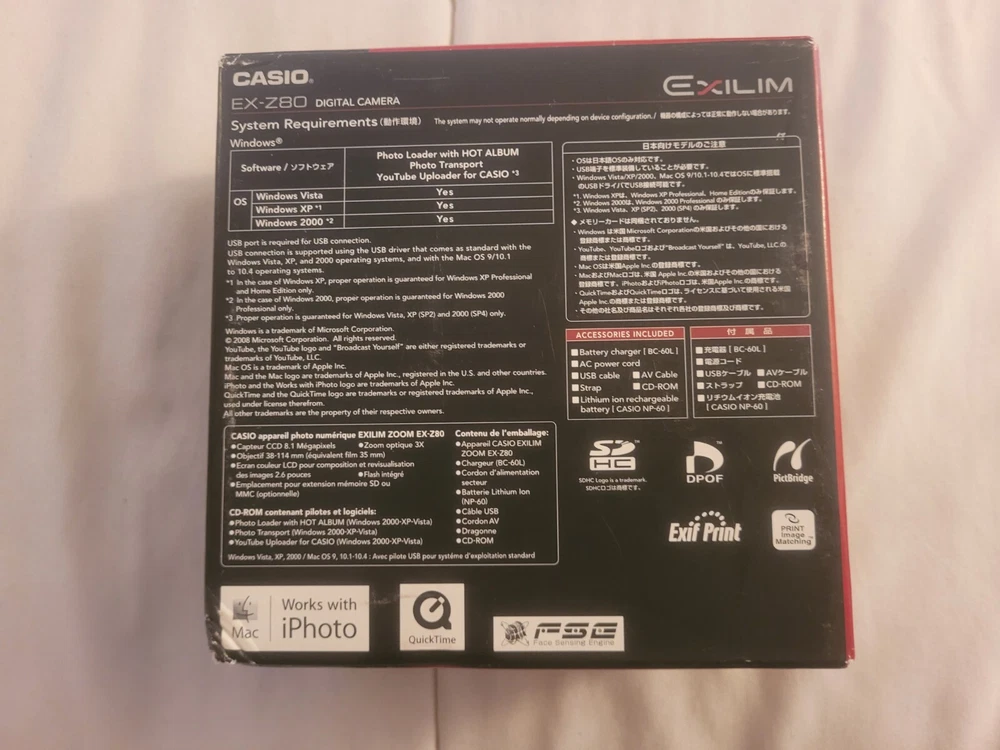 Compact Digital Camera Casio. Tested and working. In the original box with strap, owners manual, battery, charger, and SD card.