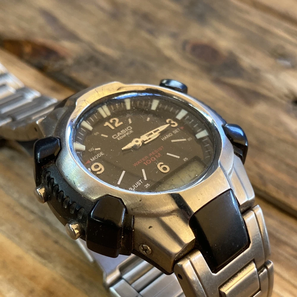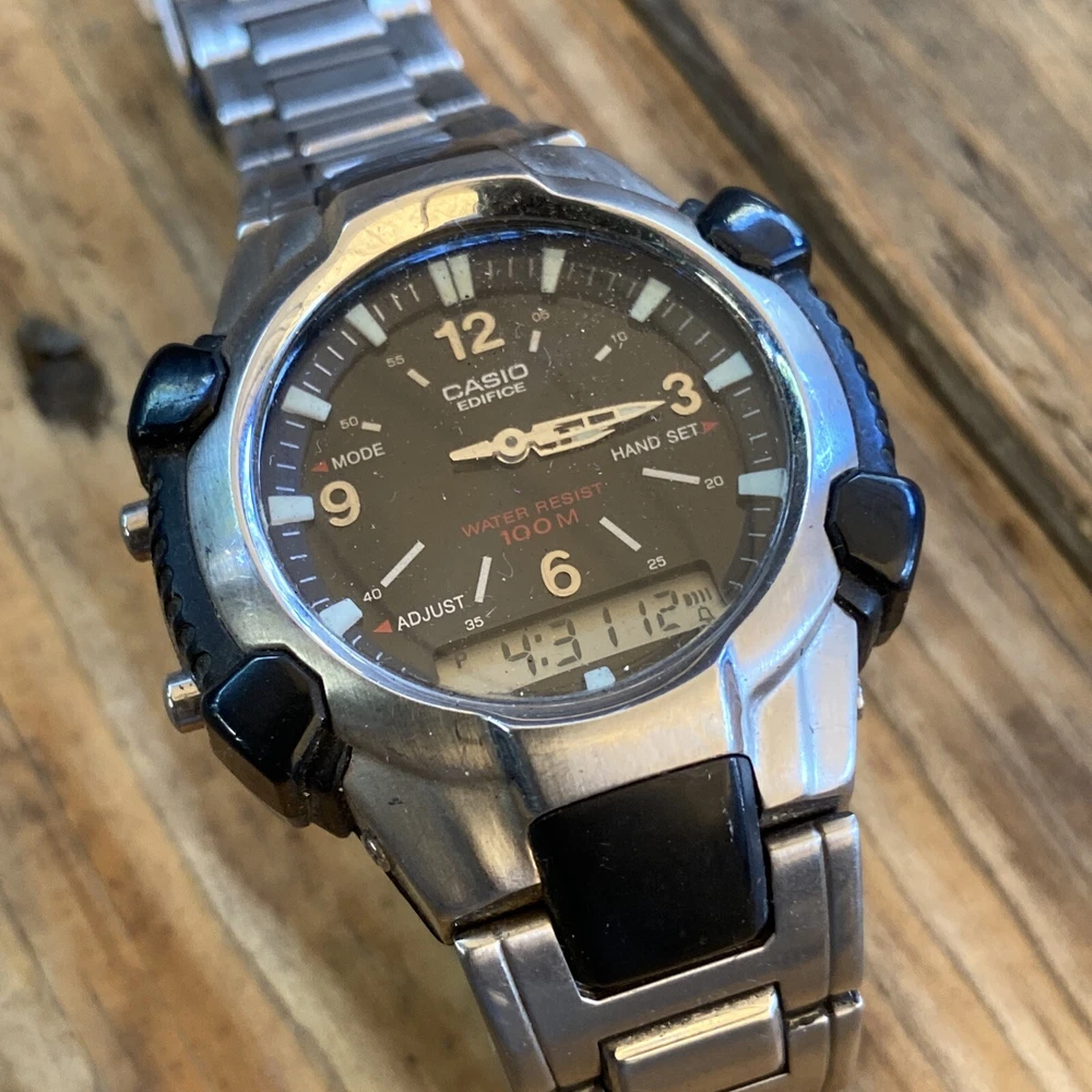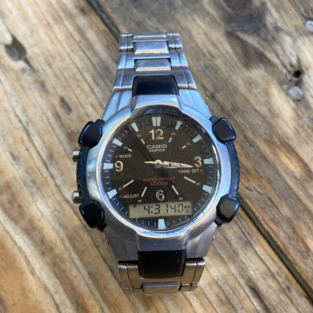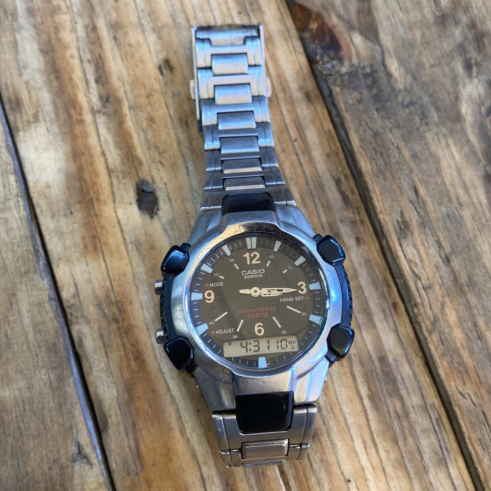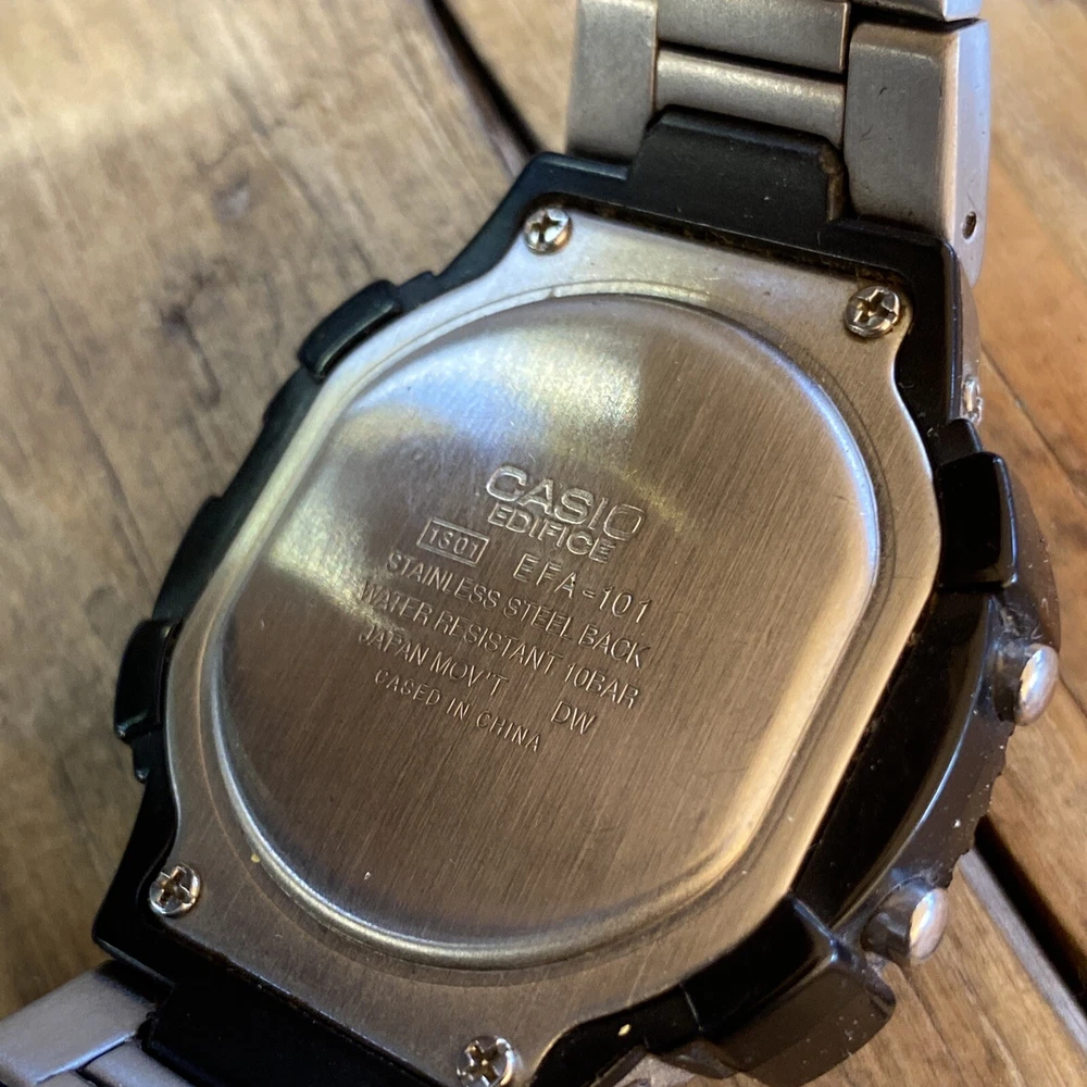 Presentamos el reloj digital de cuarzo Casio Edifice EFA-101 tiempo de alarma funcionando. Este reloj de pulsera es una gran adición a la colección de cualquier persona. Su elegante pantalla digital muestra la hora y cuenta con una función de alarma. Hecho por Casio, el reloj es confiable y duradero, y su movimiento de cuarzo garantiza un cronometraje preciso. El diseño unisex lo convierte en un accesorio versátil, adecuado para el uso diario. Su número de referencia es EFA-101, y pertenece a las categorías de joyas y relojes, relojes, piezas y accesorios y relojes de pulsera. ¡Añade este elegante reloj de pulsera a tu colección hoy! WSA-7
