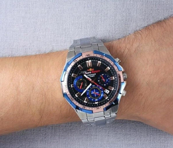 Warranty 2 years with our eBay store on wach mechanism Movement Quartz Battery Water resistance 100M/10ATM Type analogue Strap Material Stainless steel Strap Colour Silver Closure type Folding clasp Wrist Size 15-22 cm Strap Width 20mm Case Colour Silver tone Case Material stainless steel Case Shape Round Case Diameter 45 mm Case Thickness 13 mm Packaging Box,Manual And Tags