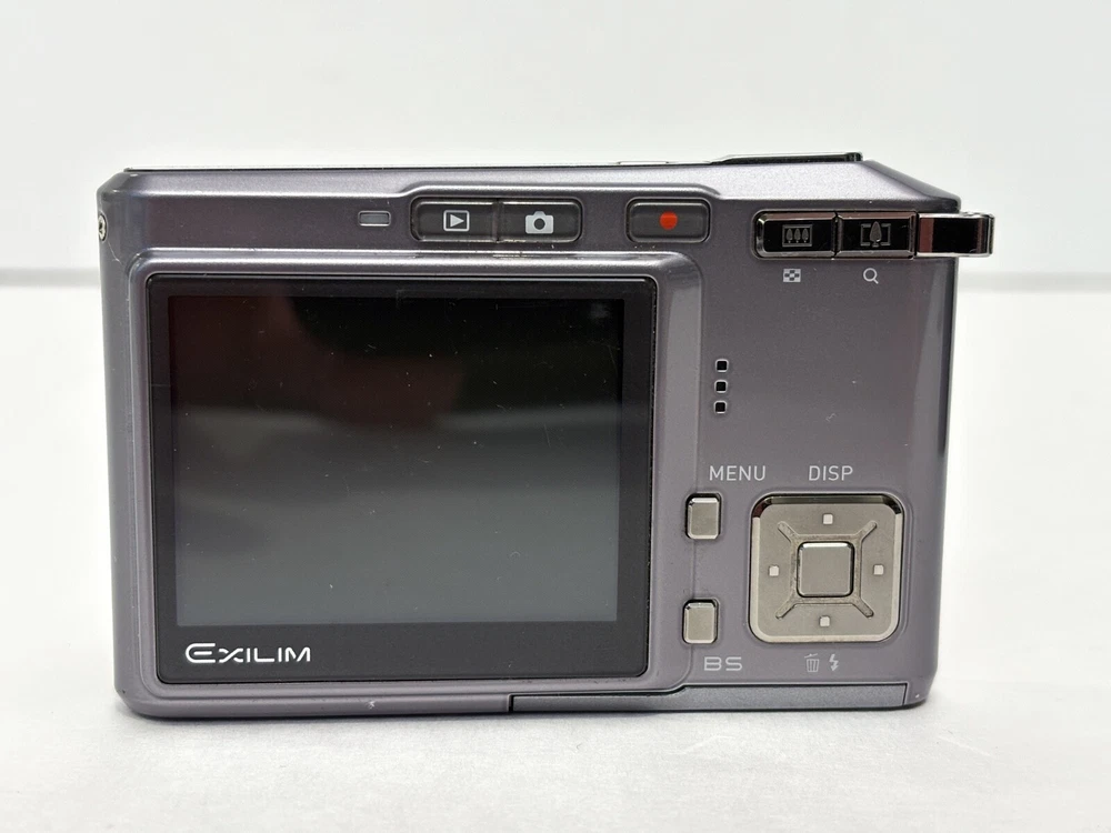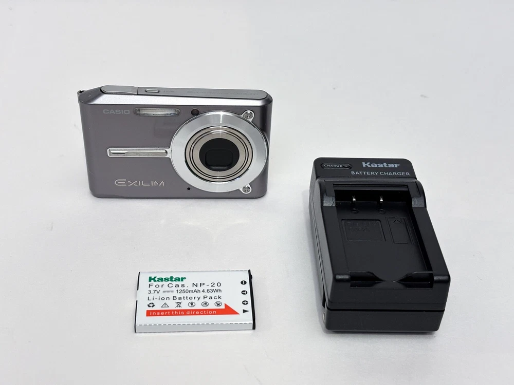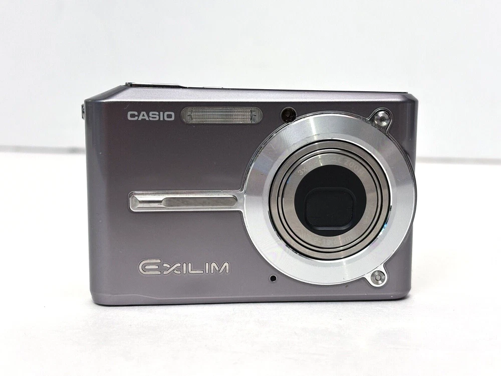 The Casio Exilim EX-S500 is a compact digital camera from the Casio EXILIM series. It features a 5.0 MP maximum resolution with both 3x optical and digital zoom capabilities, all housed in a sleek silver body. This camera includes built-in features such as a speaker, flash, and audio recording functionality, along with an auto power save mode for energy efficiency. Powered by a lithium-ion battery, the camera also comes with a charger and has been tested for functionality. great overall condition - light scratches on screen not visible when on, comes with new battery & Charger