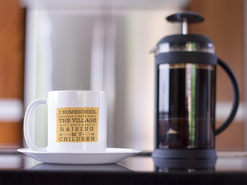 Enjoy your coffee or tea with this awesome Homeschooling mug. I Homeschool Because I Have Seen The Village and I Don't Want It Raising My Children. 11 oz White Ceramic Funny Coffee Mug Design is printed on both sides Dishwasher ( Top Rack ) and Microwave safe under normal use. Mug measures: 4.75 x 3.13 x 3.75 inches
