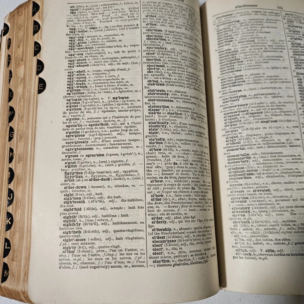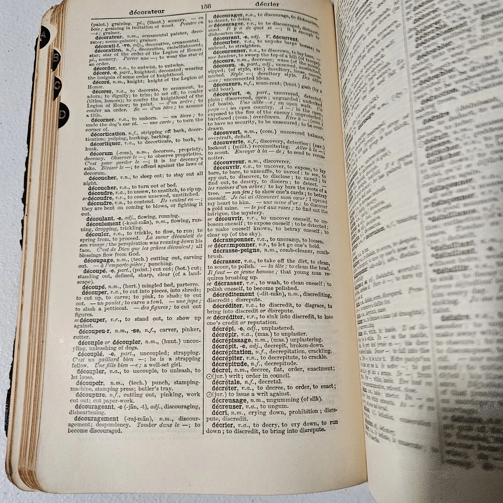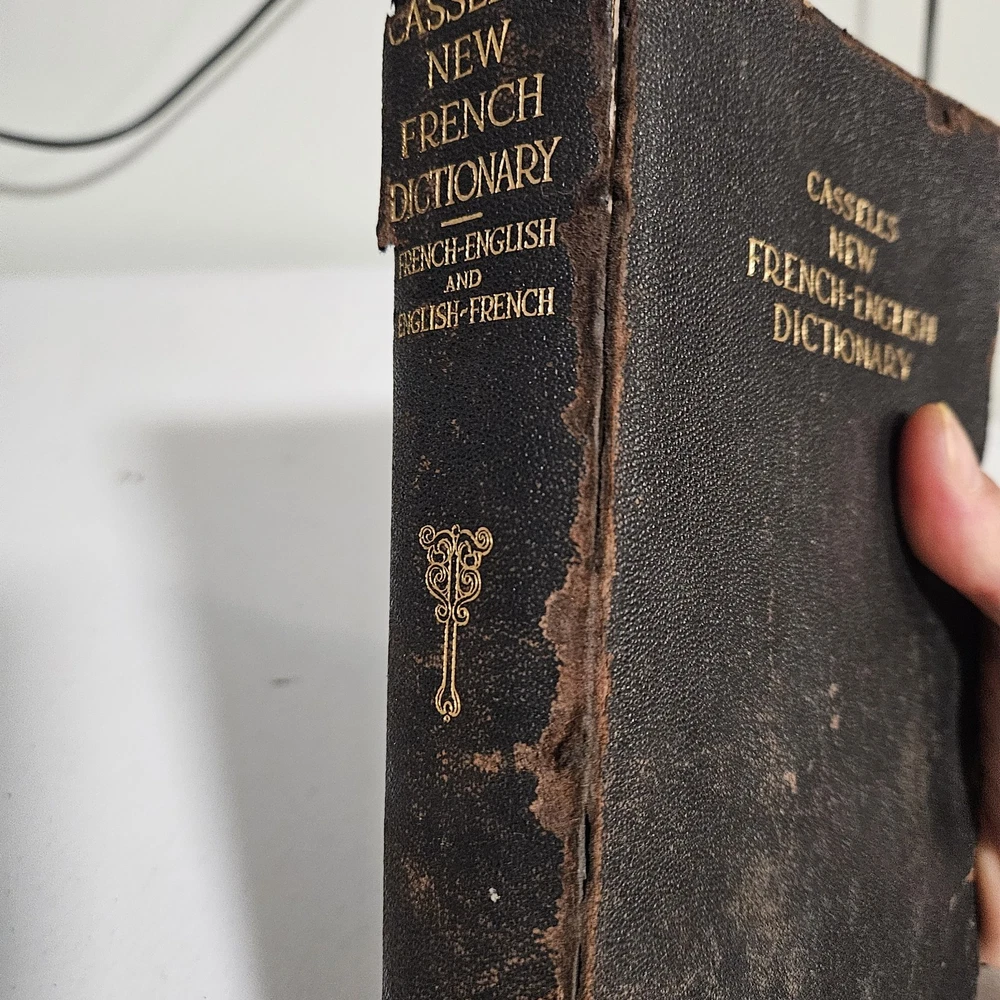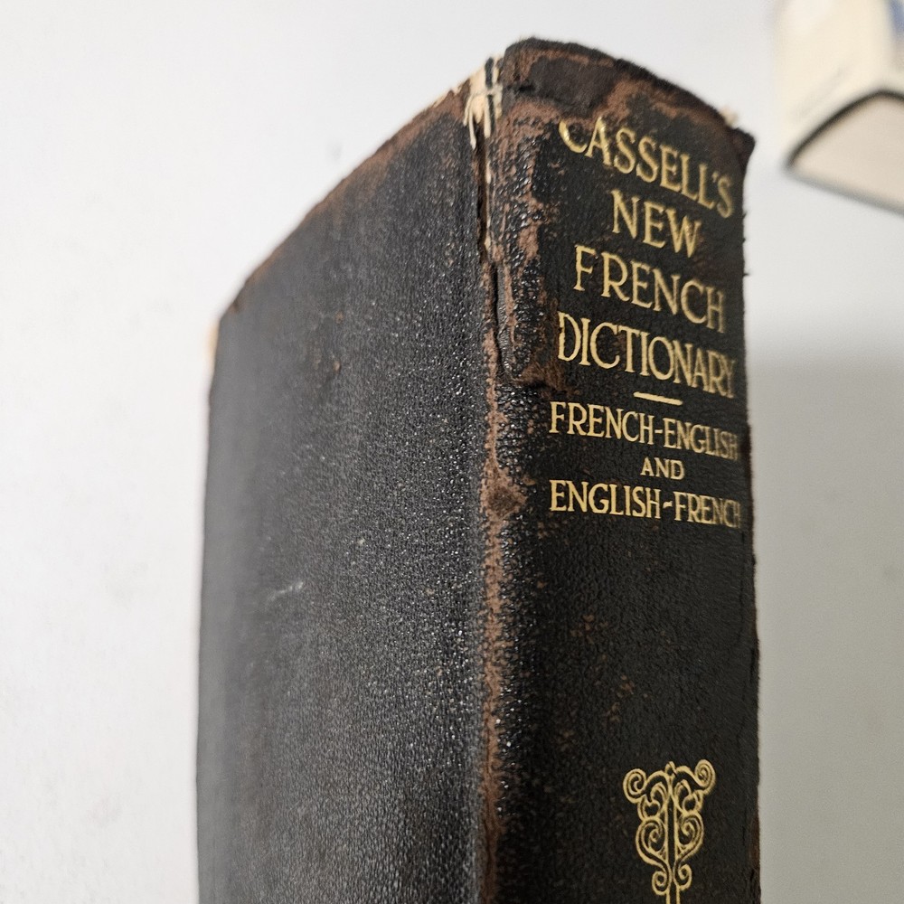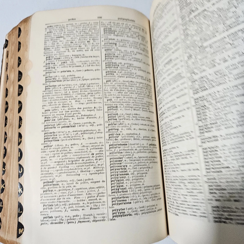 The dictionary is intact, and the pages are in good condition. The cover has some moderate wear and tear and can be handled normally but with some care. See all photos