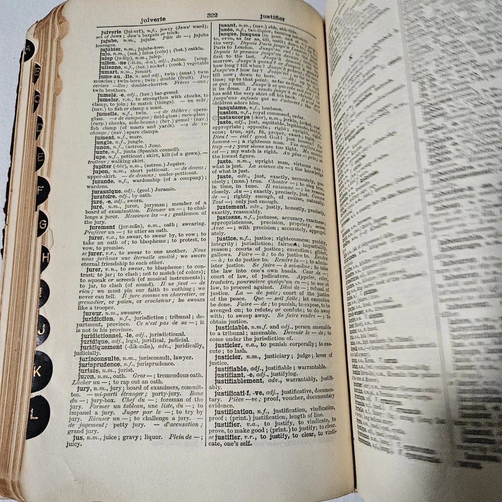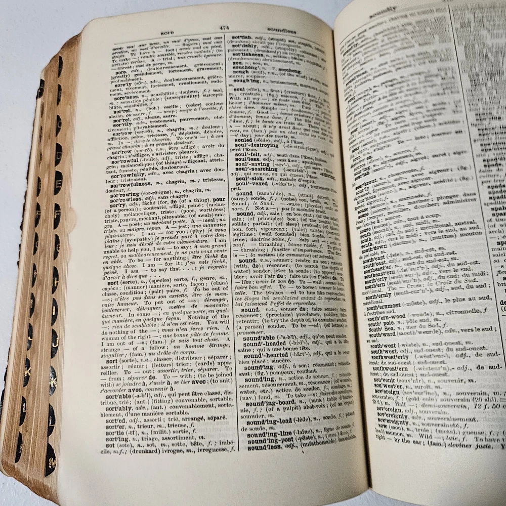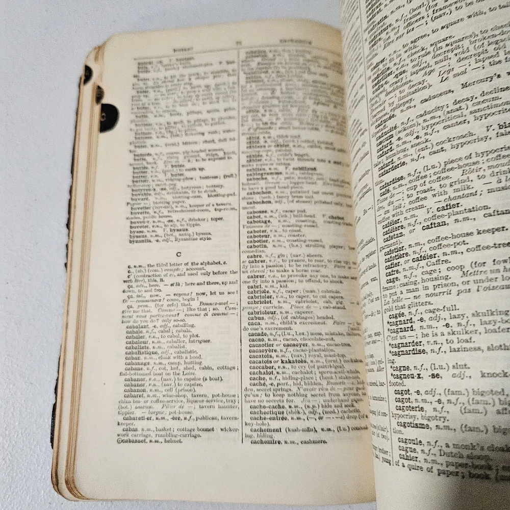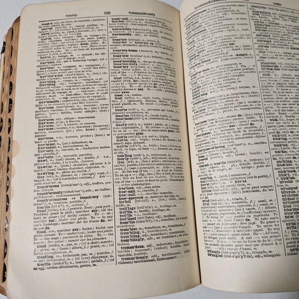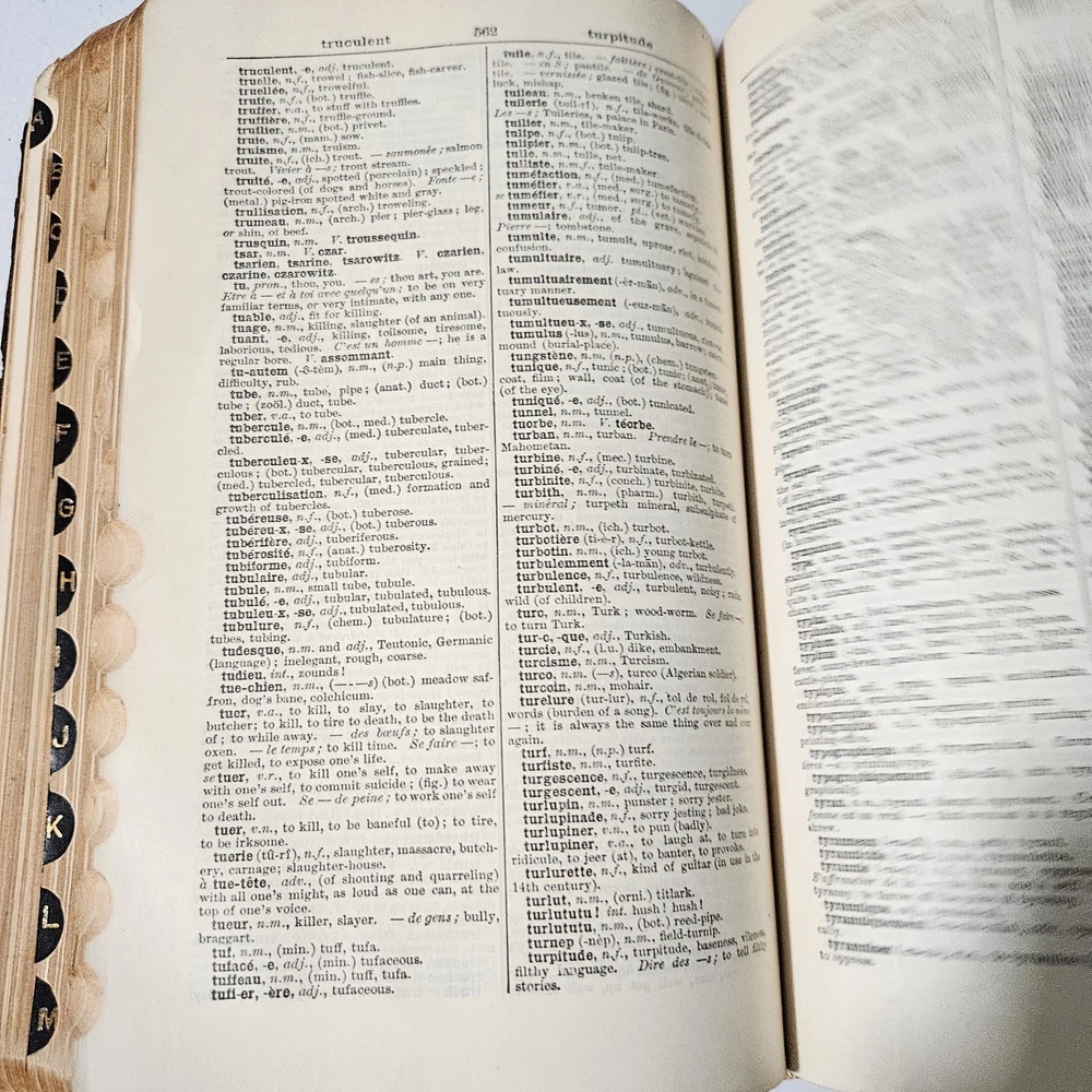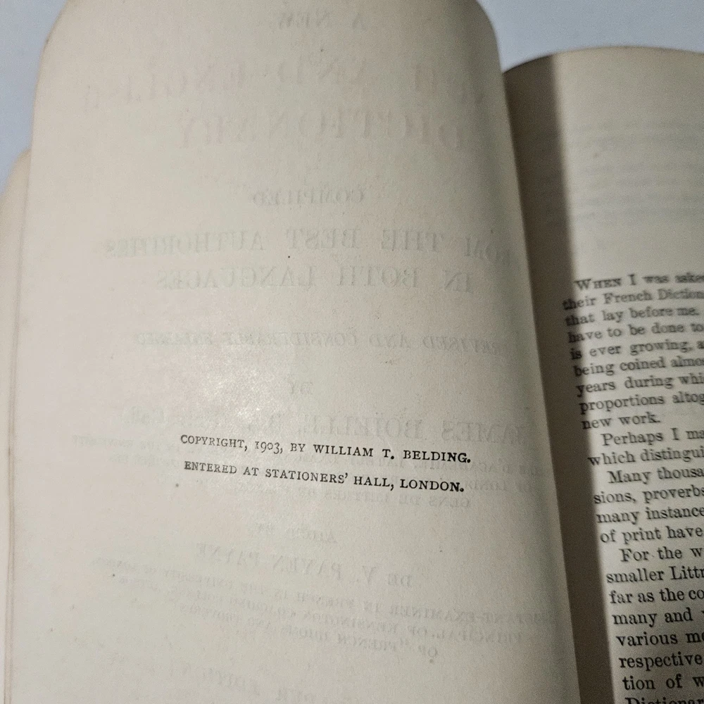 The dictionary is intact, and the pages are in good condition. The cover has some moderate wear and tear and can be handled normally but with some care. See all photos