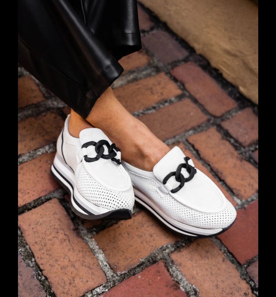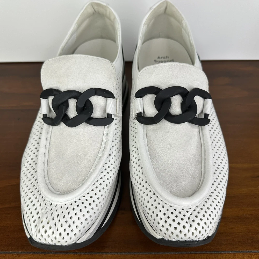 Cassie White Black Slip-On Platform Loafers | Arch Support Sneakers EU 38.5