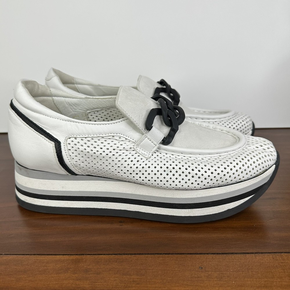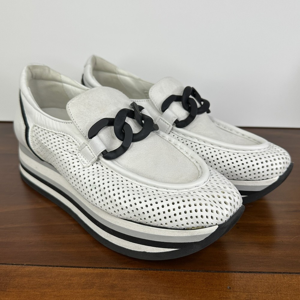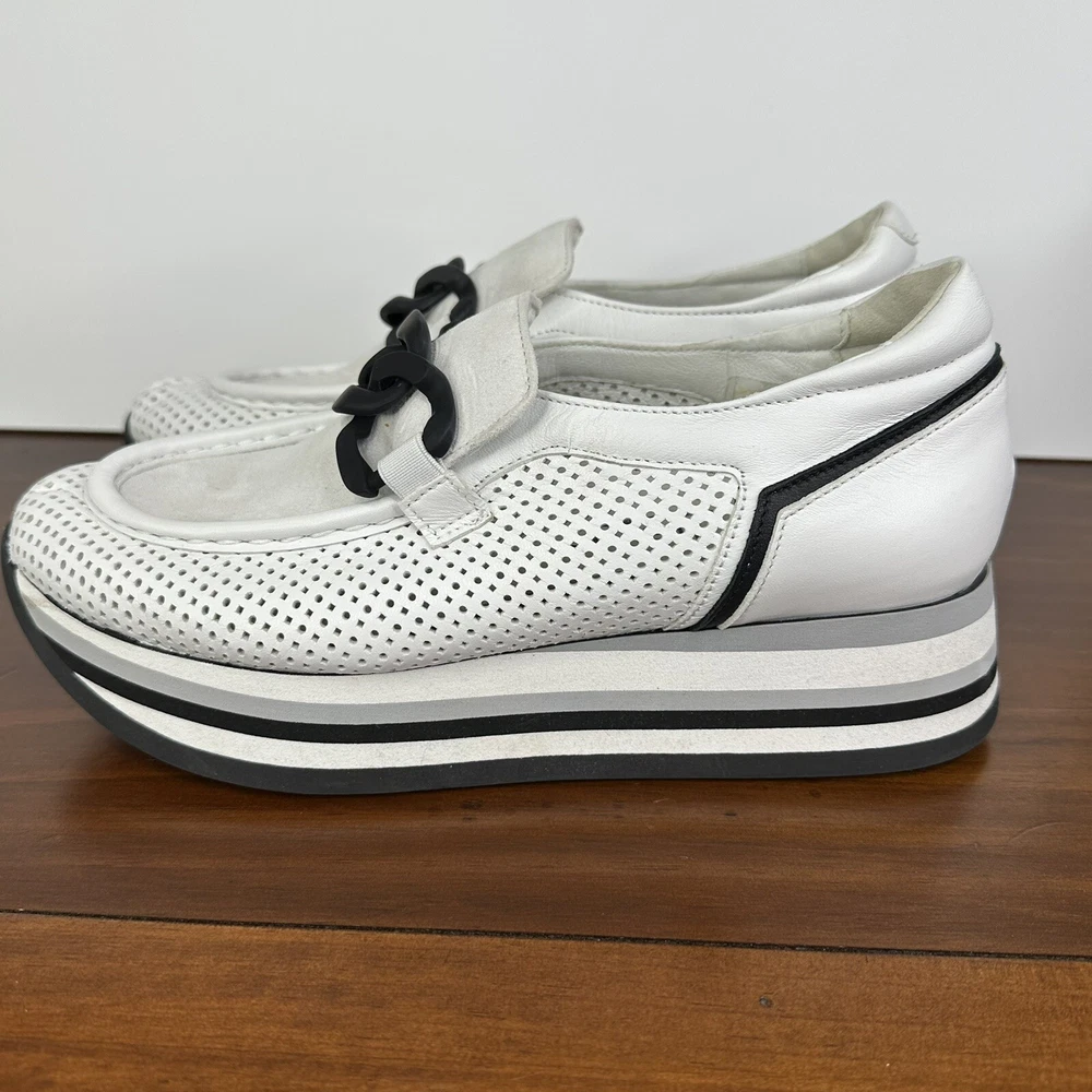 Softwaves Cassie White Black Slip On Platform Loafer Sneakers Arch Support 38.5 US Shoes Size 7.5 Platform 1.5" In great condition - very little wear. $285 Retail