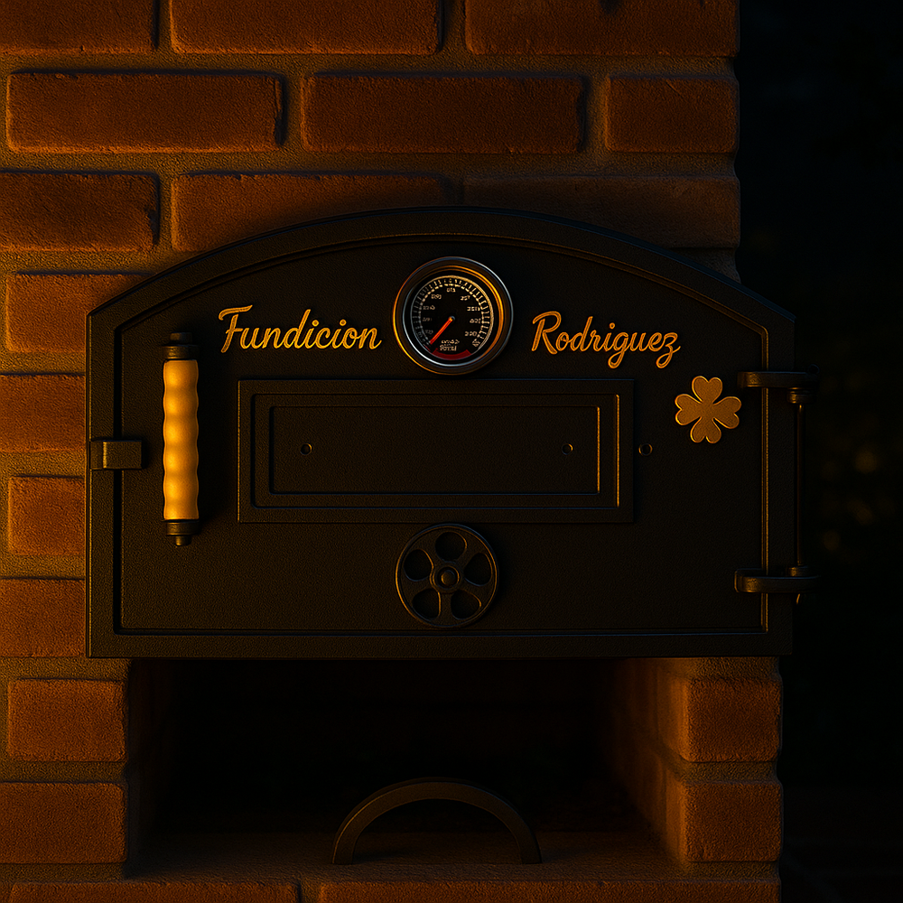 ✅ Description Upgrade your clay oven with this cast aluminum door , combining durability and heat efficiency with a stylish design. Featuring a built-in thermometer , it ensures accurate cooking temperatures for your favorite recipes. Perfect for wood-fired ovens and outdoor kitchens, this oven door delivers strength, longevity, and performance in every use. Specifications: Material: Cast Aluminum Color: Black Dimensions: 26.77" W x 16.14" H x 4" D Features: Thermometer, Heat-Resistant Construction ✅ Highlights Clay oven door made of durable cast aluminum for lightweight strength Includes built-in thermometer for accurate temperature control Designed for wood-fired ovens , retains heat effectively Rustic style adds a traditional look to your outdoor kitchen Size: 26.77" W x 16.14" H