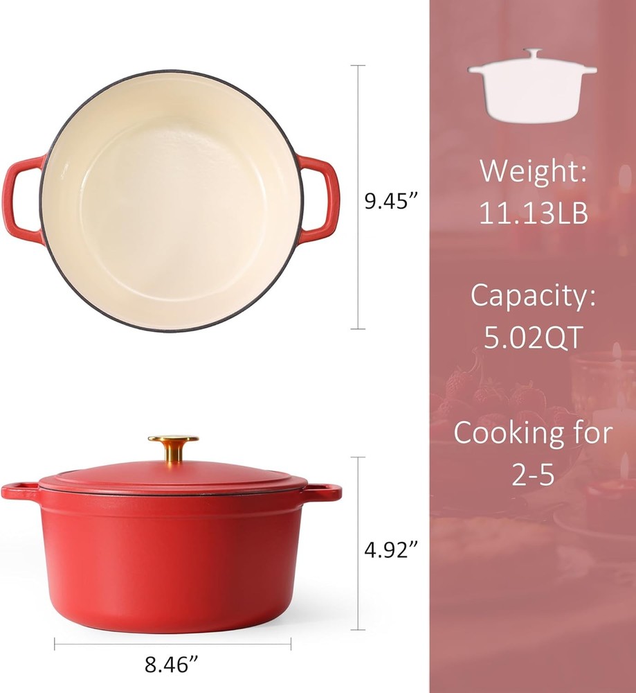$ 35.385.5 QT Enameled Cast Iron Dutch Oven, Heavy-Duty Red Pot for Baking & Stews