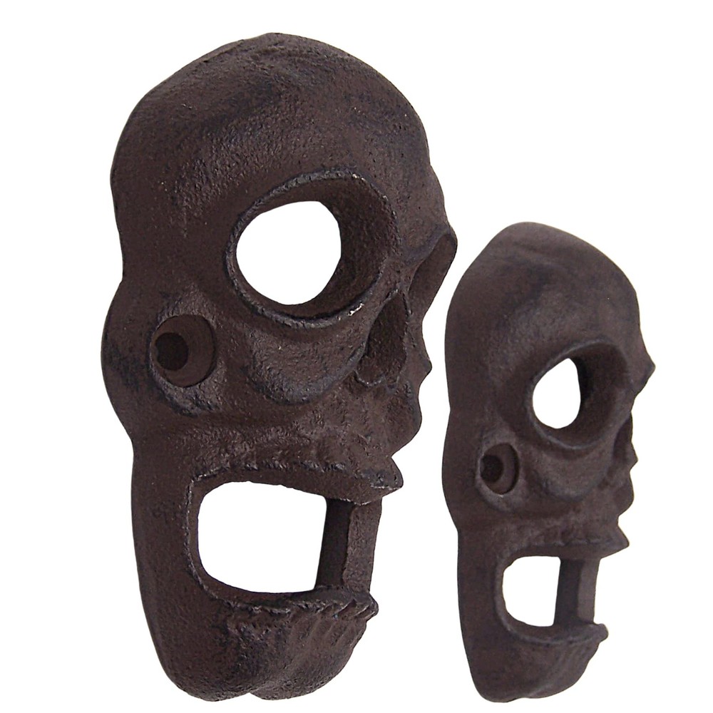 SET OF 2 BOTTLE OPENERS that are Wall Mounted and Feature a Brown Skull Head with the Opener Between the Mouth MATERIAL: Cast Iron SIZE: 2.75"L x 0.75"W x 4"H INCLUDES 2 Holes for Easy Mounting (Mounting Screws Not Included) PERFECT ACCESSORY for a Bar Area or Man Cave SET OF 2 BOTTLE OPENERS that are Wall Mounted and Feature a Brown Skull Head with the Opener Between the Mouth MATERIAL: Cast Iron SIZE: 2.75"L x 0.75"W x 4"H INCLUDES 2 Holes for Easy Mounting (Mounting Screws Not Included) PERFECT ACCESSORY for a Bar Area or Man Cave