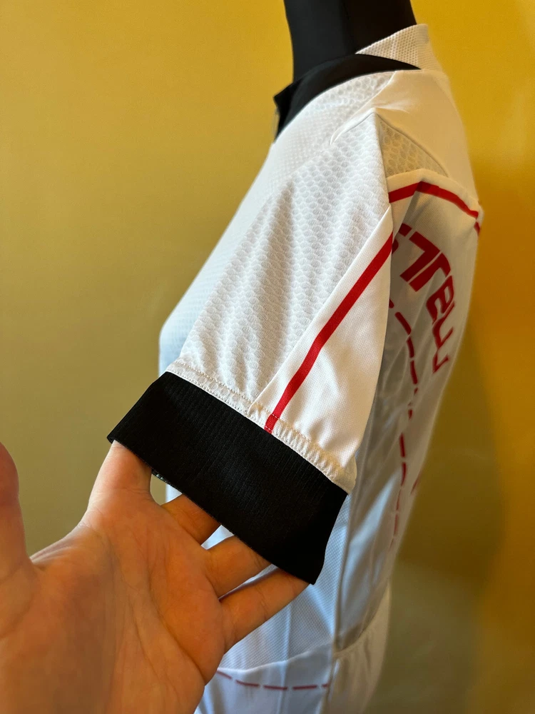 Castelli RIVOLUZIONE FZ Cycling Jersey CarboNot 3D Fabric SIZE L For Men's NEW! The defect is visible in the photo: Pulled threads and dirty. CarboNot 3D fabric provides double-layer moisture transport Sublimation-printed graphic on shoulder and side panels Full-length YKK® Camlock zipper 3 rear pockets with reflective tabs Jacquard rear elastic I accept combined sending, if you have any questions look forward to your messages. The clothes are new, 100% original. Clothes may be with minimal defects, they are slightly visible or not visible at all. If you need more photos, write.