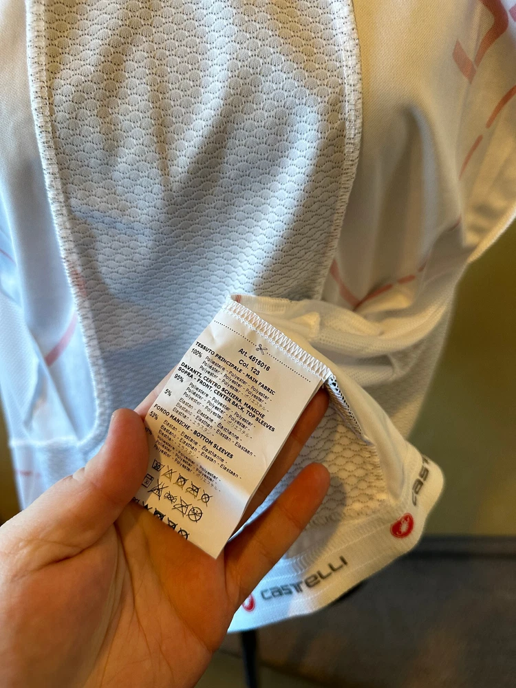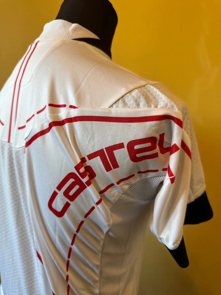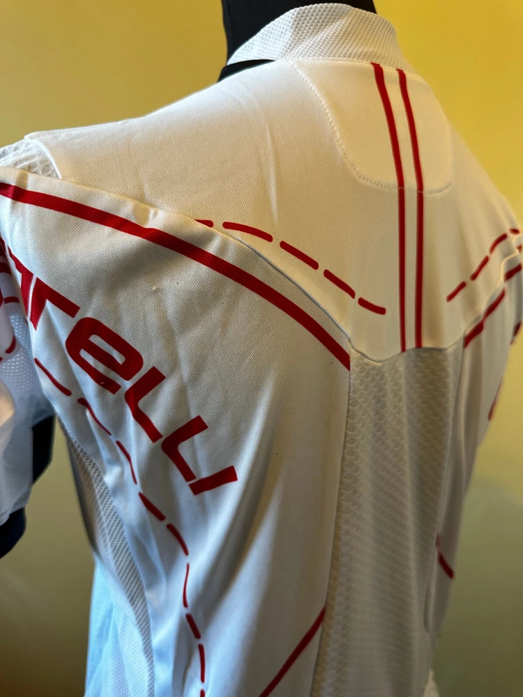 Graphic Print: No Season: Spring, Summer Character: Logo Sponsor Fit: Regular Features: Full Zip Handmade: No Color: White Seller Notes: “The defect is visible in the photo: Pulled threads and dirty.” Neckline: Round Neck Fabric Wash: Cycling Signed: No Sleeve Length: Short Sleeve Fabric Type: Cycling Closure: Zip Country/Region of Manufacture: Hungary Theme: Sports Type: Casual Pattern: Logo Sponsor Brand: Castelli Size Type: Regular Material: Cycling Style: Jersey Model: Castelli RIVOLUZIONE FZ Garment Care: Machine Washable Personalize: No Performance/Activity: Cycling Department: Men Vintage: No Size: L