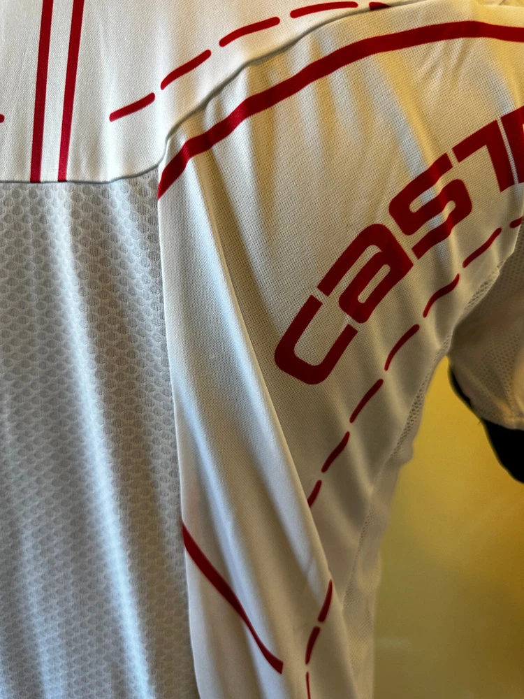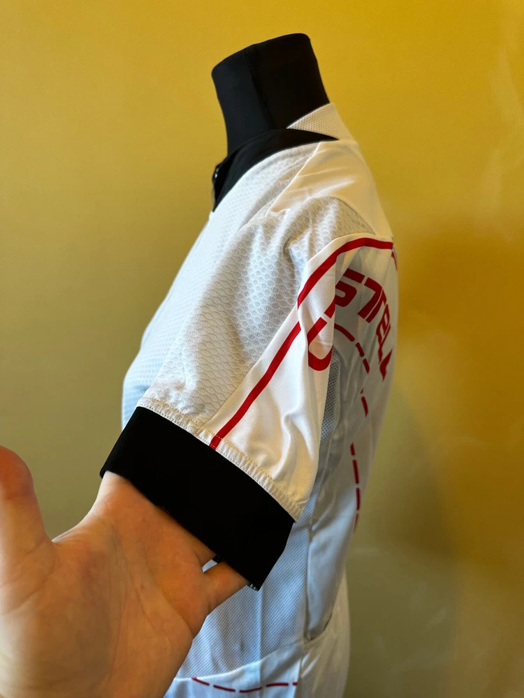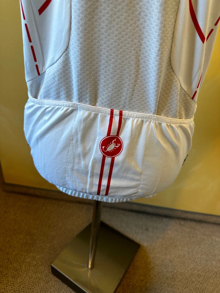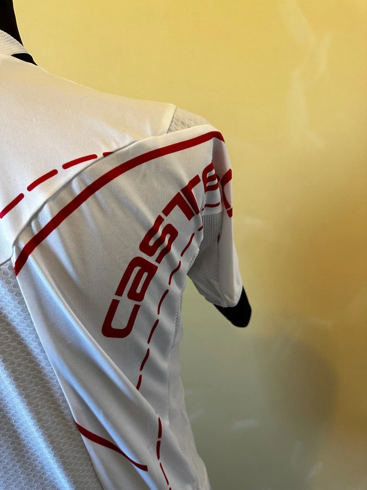 Castelli RIVOLUZIONE FZ Cycling Jersey CarboNot 3D Fabric SIZE L For Men's NEW! The defect is visible in the photo: Pulled threads and dirty. CarboNot 3D fabric provides double-layer moisture transport Sublimation-printed graphic on shoulder and side panels Full-length YKK® Camlock zipper 3 rear pockets with reflective tabs Jacquard rear elastic I accept combined sending, if you have any questions look forward to your messages. The clothes are new, 100% original. Clothes may be with minimal defects, they are slightly visible or not visible at all. If you need more photos, write.