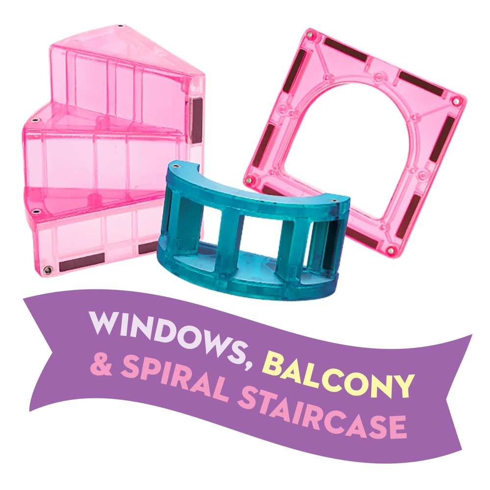 What’s Included: 25 magnetic pieces, including 1 Drawbridge, 1 Dragon Figure, 1 Royalty Figure, 1 Spiral Staircase, 1 Balcony, 2 Windows, 2 Equilateral Triangles, 2 Quarter Circles, 4 Isosceles Triangles (2 Glitter, 2 Standard) and 10 Squares (4 Glitter, 6 Standard). What Makes It Unique: Includes our first working Drawbridge, Spiral Staircase and Balcony, exclusive Dragon and Royalty figures, redesigned Windows for enhanced storytelling and imaginative play. Developmental: Encourages children to learn through play, exploring cause and effect and other logic principles, while fostering the development of hand-eye coordination and fine motor skills. Great for Gifting: Makes a great gift for castle-loving kids ages 3+. More to Explore: Check out Castle DLX for the royal treatment in medieval magnetic fun! Always Compatible: All pieces are compatible with and complementary to all other sets, including sparkling Stardust and Classic sets. Safety Guaranteed: All pieces are built to withstand countless hours of playtime. Our signature lattice prevents cracking, while fastening rivets keep magnets safe and secure. Superior Quality: pieces are made from food-grade, non-toxic MABS plastic that’s free from BPAs, phthalates, and latex. Our magnets are selected with kids in mind, letting them easily pull apart tiles for safe, frustration-free building. Made With Purpose: sets are loved by builders ages 3-99 and designed for kids to enjoy, without instructions or adult assistance. We're advocates for Meaningful Play, that is: Fun and Engaging, Experience Based, Child Led and Developmental.