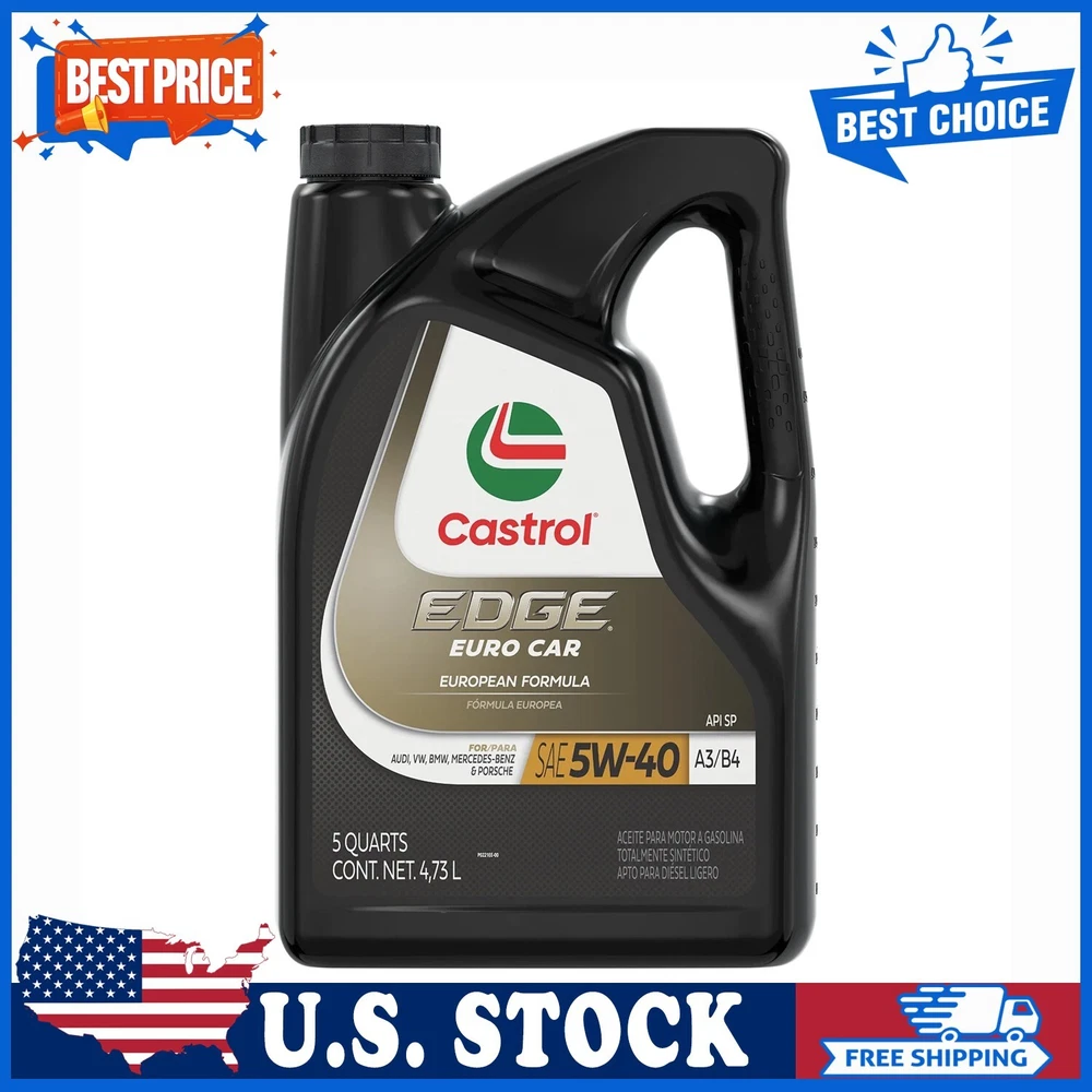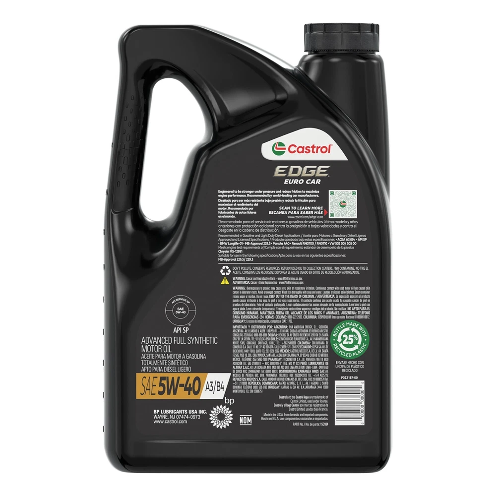 Castrol EDGE Euro 5W-40 A3/B4 Advanced Full Synthetic Motor Oil, 5 Quarts
