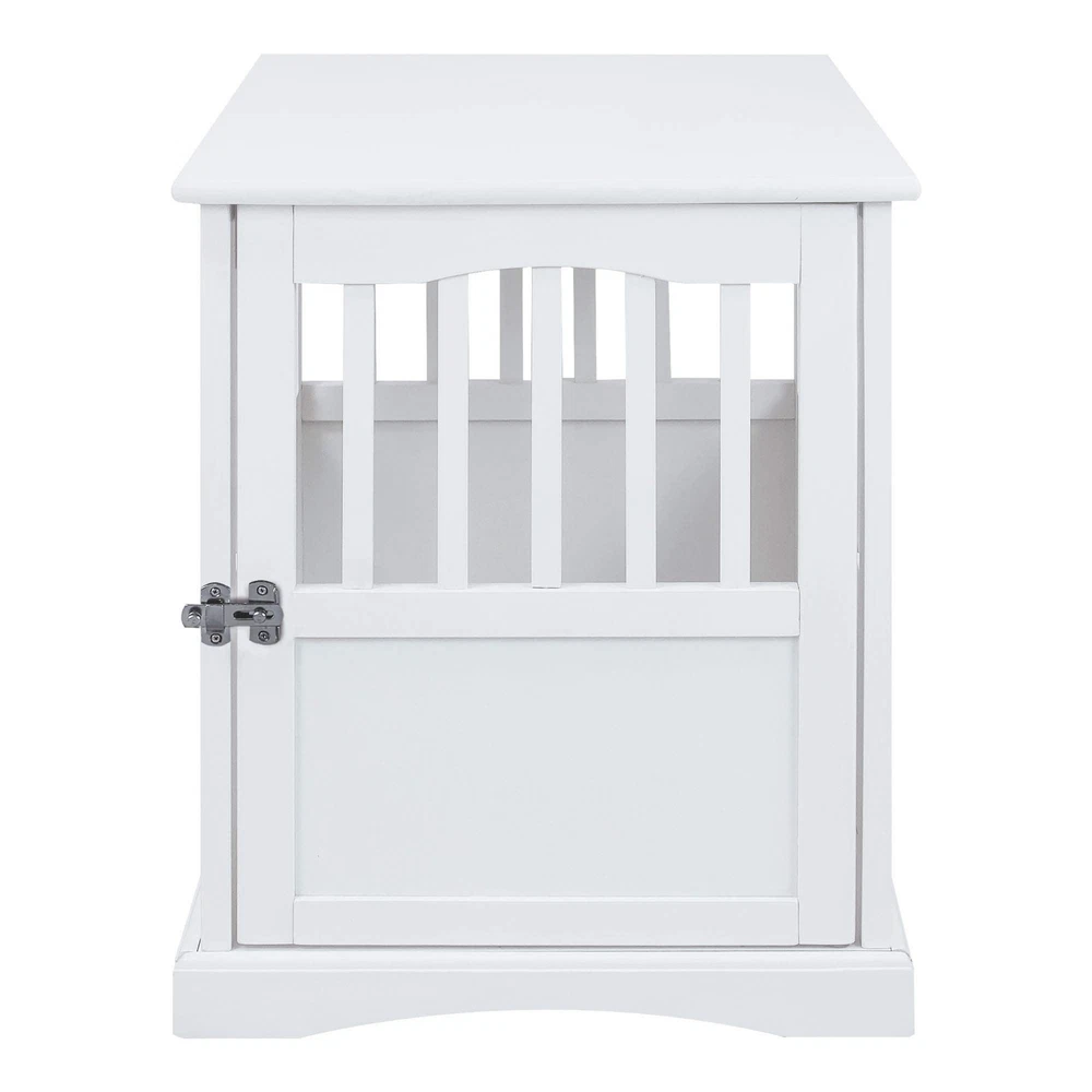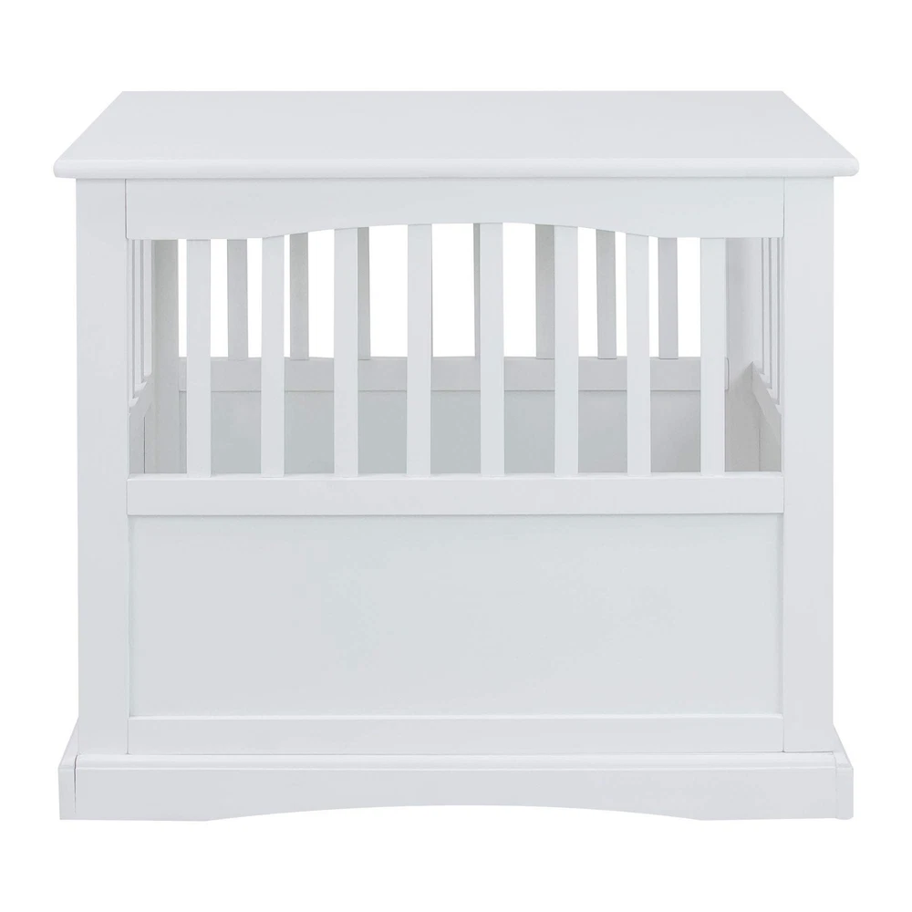 Indoor Pet Crate: Keep your pet safely and comfortably kept inside the cage while maintaining your home's aesthetics with this dog crate from Casual Home Durable Construction: Dog kennel is constructed with solid pine wood material that can hold up to 180 pounds of interior weight, ensuring durability and longevity for years to come Versatile and Functional: Features a spacious dog crate topper which can hold up to 120 pounds and can also be used as a top table, or as a space for your pet's supplements, toys, and accessories House Furniture: Indoor dog house comes in a rich, white finish which also doubles as a beautiful piece of furniture for your home and blends seamlessly in your existing decors Easy to Assemble: Dog kennel is lightweight and easy to assemble, providing you and your pet a hassle-free setup; Measures 20 inches long, 27.5 inches wide, and 24 inches high