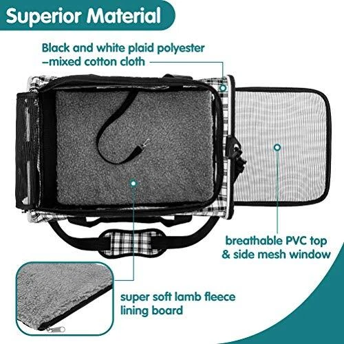 Return Policy Fast Delivery Trusted seller Cat Carrier Soft-Sided Pet Carrier for Cat,Cat Carrier Hard with Top Entry and Shoulder Strap for Large Cats,Pet Carrier Airline Approved Fit 2 Kitties Small Dogs Easy Storage Product Description Large Dimension: This pet carrier measures approximately 17 x 12 x 12 inches, which is recommended for medium and large cats, small dogs as well as even two small cats. Superior Material: The carrier made of black and white plaid polyester-mixed cotton cloth is easy to clean, and black PVC mesh provides adequate airflow and also easy viewing. Escape-proof & Safe: All zippers equipped with anti-escape clips can effectively prevent pets from scratching and opening, and the lead inside the carrier is also designed for additional security. Convenient & Portable: The collapsible pet carrier is easier to store and carry, whose padded adjustable shoulder strap and hand carry handle can help you hands-free carrying. Comfortable Bottom: T is a lining board inside to fix the shape of the bottom, whose outer layer is made of super soft lamb fleece and that is removable for cleaning as well. Shipping Returns Payment Shipping Shipping is FREE to all addresses other than APO/PO boxes in the lower 48 states. All our stock ships from US-based warehouses. Shipped via USPS or UPS (depending on location and package weight) Unless stated otherwise, all orders will ship within 24-72 hours of your payment being processed. Check our feedback to see the great reviews of FAST shipping we offer. Returns Seller does not accept returns Payment We currently accept payment via eBay managed payments only. Once payment is cleared, we will dispatch your shipment within 1-3 business days. Please refer to the "Shipping" tab for more information regarding shipping speed to your destination.