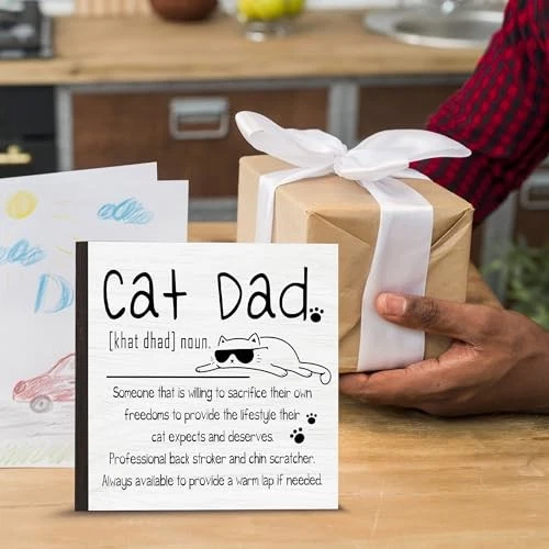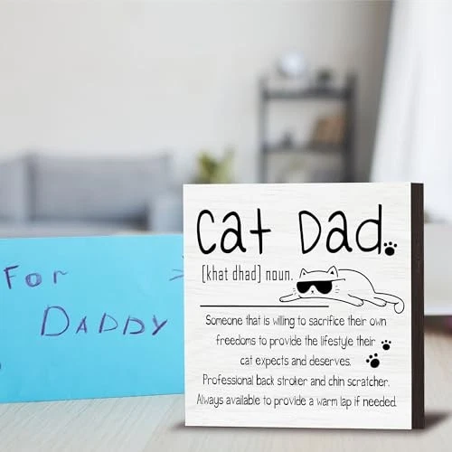Wooden Cat Dad Sign - Unique Gift for Men, Birthday or Christmas Home Decor