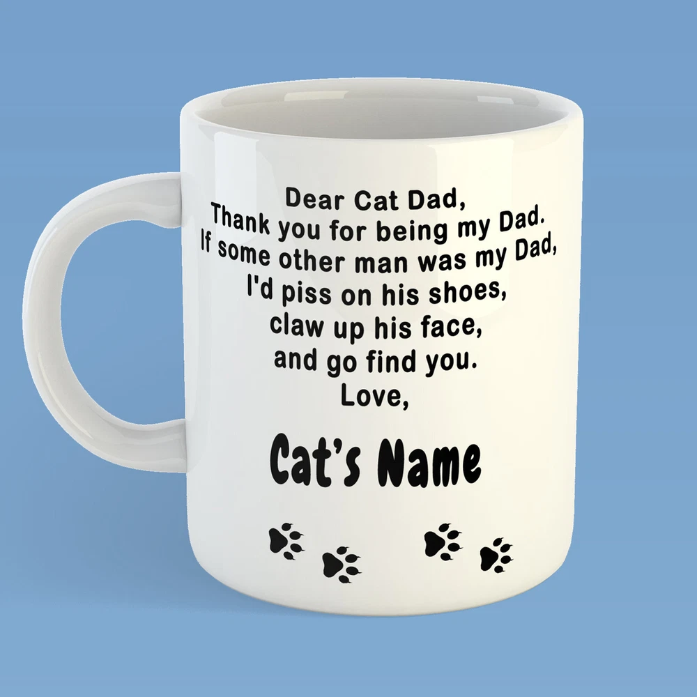 Cat Dad Mug Cat Dad Cat Dad Gift Cat Lover Gift Cat Mug Cat Lover Funny Cat Mug Product Details.. This high quality 11oz. ceramic white mug has a premium hard coat that provides crisp and vibrant color reproduction sure to last for years. Perfect for all hot & cold beverages. The highest quality printing possible is used. It will never fade no matter how many times you wash it. Material: 100% Ceramic. Print both sides. Dishwasher and Microwave Safe. High Gloss + Premium White Finish. Printed in the U.S.A. Personalized & Custom. We support personalized and custom mug to add custom, when placing an order, you can add notes to the "order note" in shipping address section. Also you can contact us directly via message. Shipping Info. Ready to ship in 1 to 2 business days, All products are made-to-order and proudly printed in the United States. Shipped by USPS and DHL, You will receive your order in 5-7 days. Replace & Refund. All products are defective during shipping broken, chipped will be replaced free of charge. You are not satisfied with the product, we will refund 100% money to you. If any other issues arise, please do not hesitate to message, we would be more than happy to assist you.
