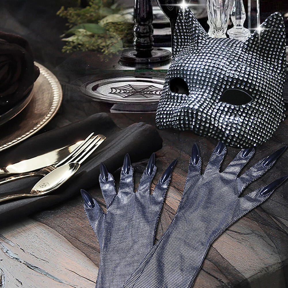 Description: Name: Cat Mask And Gloves Fabric: PP And Bronzing Cloth Color: Black Silver Weight: Mask: 118g/Gloves: 35g Features: 1. Cat Masquerade Masks Are The Best Props For Halloween Costumes, Carnivals, Music Carnivals, Fancy Cosplay, Theme Parties Such As Cosplay 2. Suitable For Women, Kitten Costume Halloween And Cosplay Costumes, Simple And Comfortable 3. Perfect Gift For Someone Special In Your Life 4. Luxurious Sexy Masquerade Mask, Perfect Costume For Girls Ladies, Make Yourself Look Great At The Party 5. Comfortable, Lightweight, Universal Design, High-quality Mask With High-quality Design, Looks Very Fashionable And Luxurious Package Included: 1 * Mask/1 pair of * gloves/1 set * set