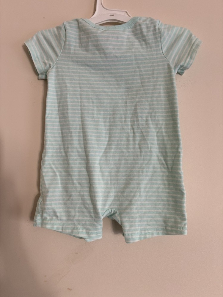 Cat & Jack Baby Boy Cute Crab Striped Cotton Short Sleeve Romper Lt Blue 6M-9M. Condition is pre-owned. Smoke free, pet free home. Shipped via USPS Ground Advantage. In very good condition. Free of rips or stains.