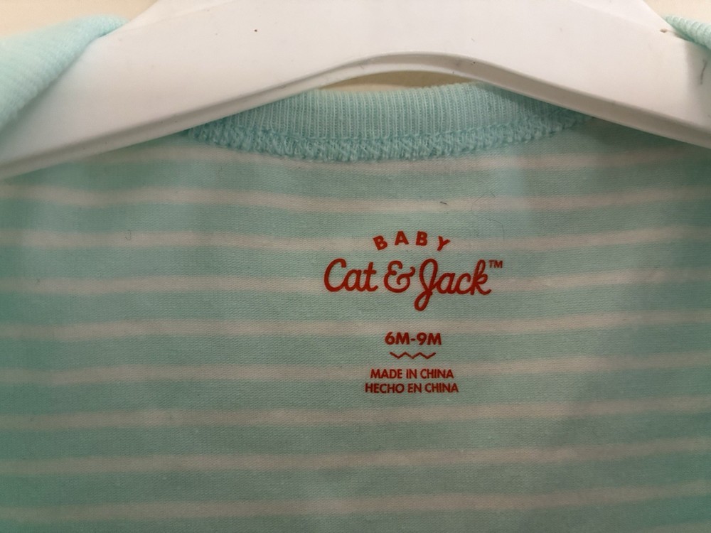 Sleeve Length: Short Sleeve Seller Notes: “In very good condition. Free of rips or stains.” Set Includes: Shorts Type: One-Piece Color: Light Blue Features: Easy Care, Lightweight, Pockets, Stretch Character: Boy Occasion: Casual Material: 57% cotton, 38% recycled polyester, 5% spandex Garment Care: Machine Washable Style: Romper Brand: Cat & Jack Season: Fall, Spring, Summer Number of Pieces: 1 Piece Closure: Snap Accents: Embroidered Size: 6-9 Months Theme: Animals, Crab Department: Boys Country of Origin: China Fabric Type: Blended Fabric Pattern: Striped
