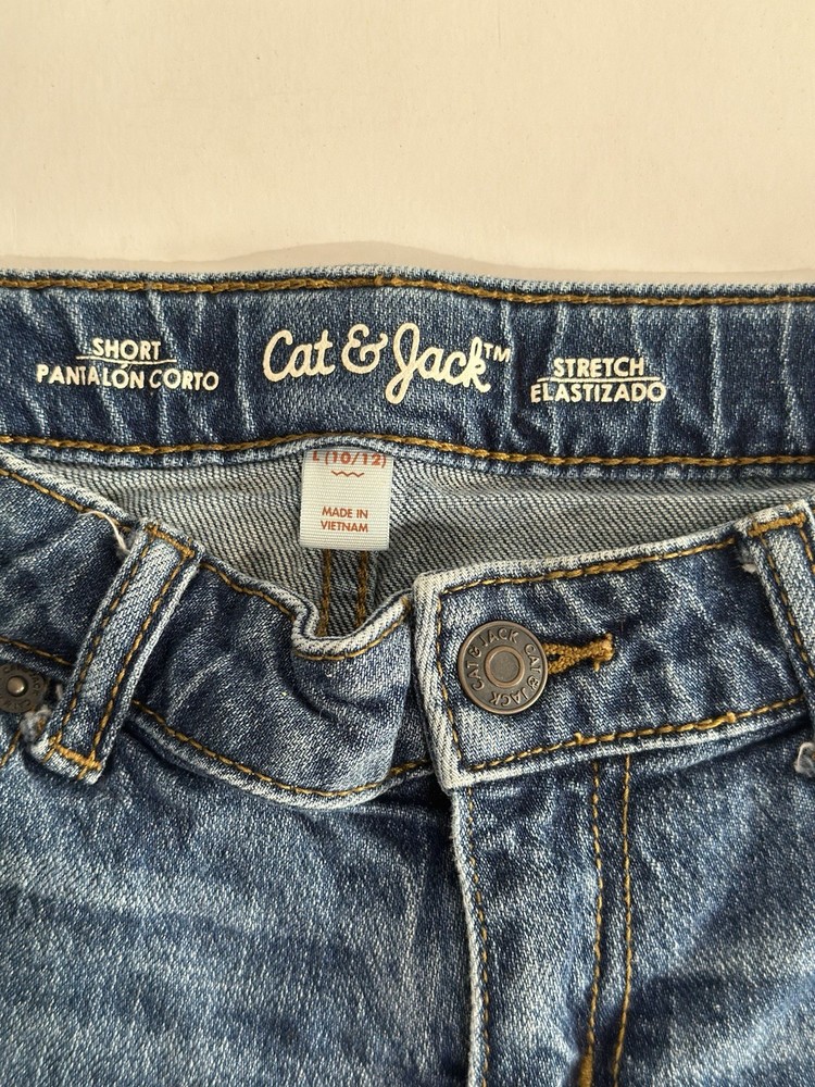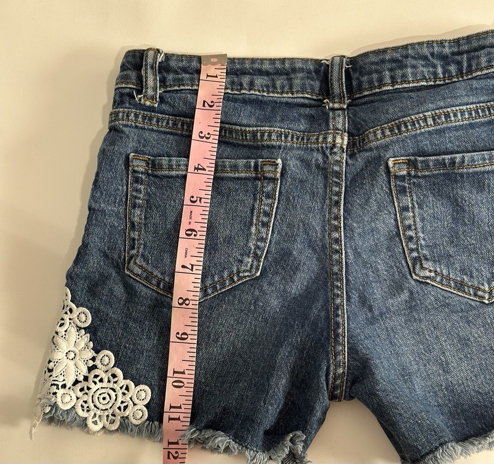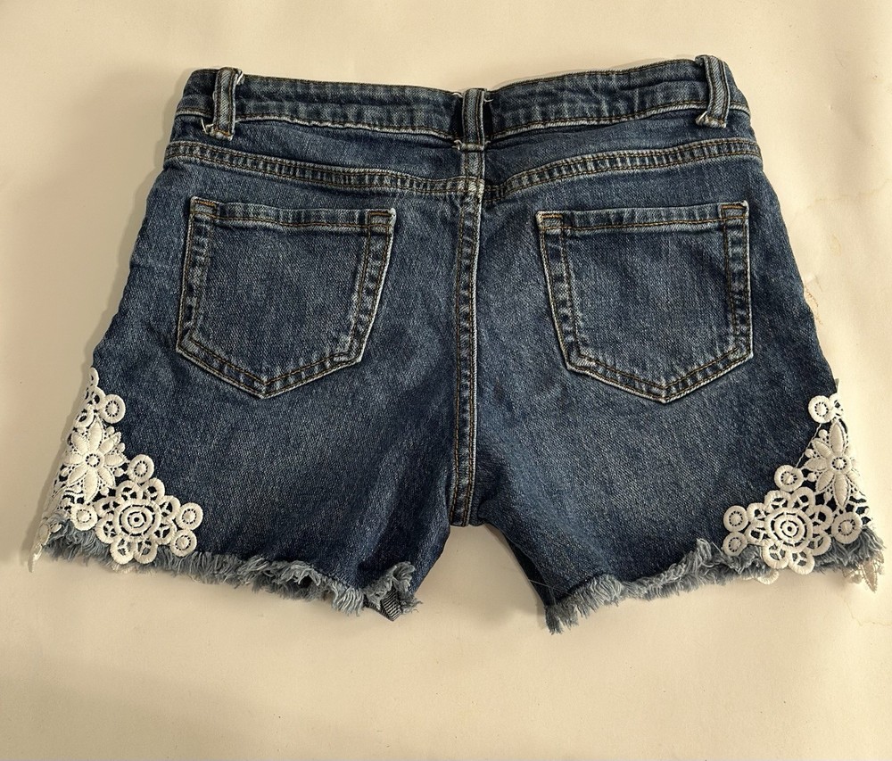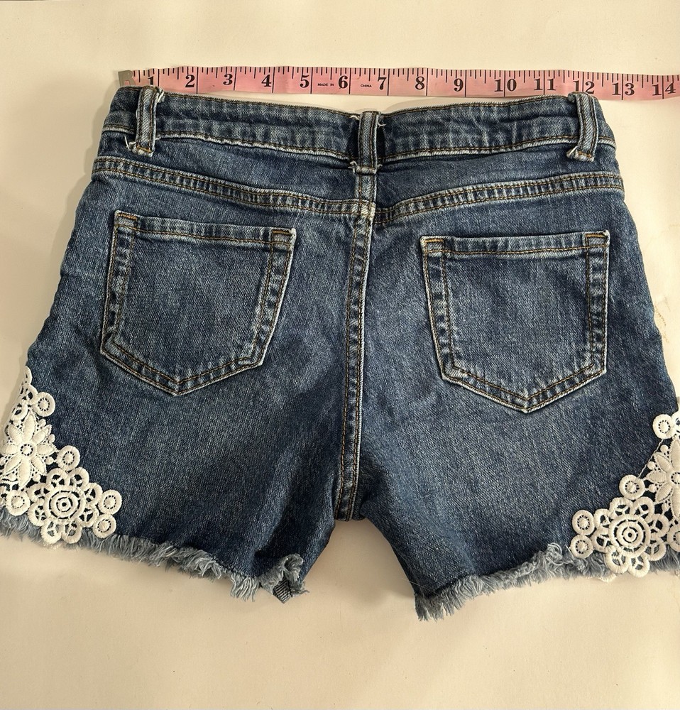 Cat & Jack Girls' Denim Cut-Off Shorts L 10/12 Floral Lace Trim Stretch Blue
