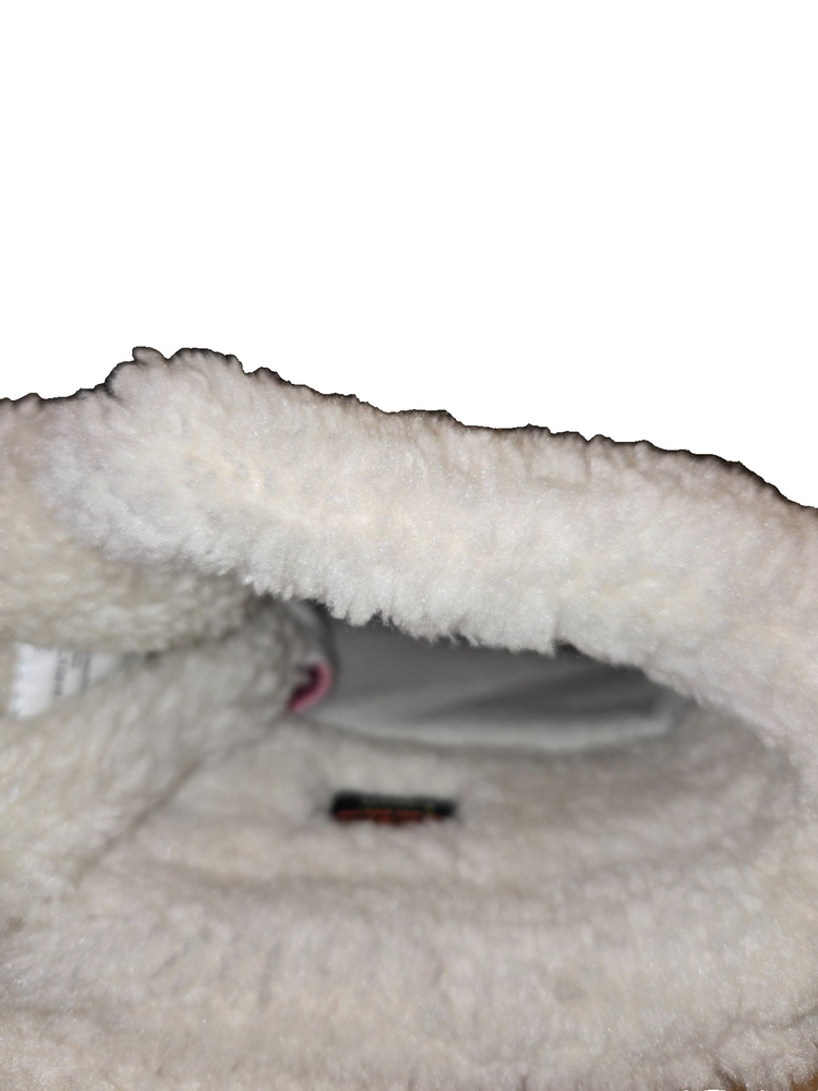 The Cat & Jack Pink and White Girls Snow Boots in size 5 are stylish and functional winter boots designed for young girls. With a round toe shape and flat heel, these snow boots provide moderate cushioning and are water resistant, making them perfect for snowy days. The faux fur lining and two-tone color add a cute and playful touch, while the leather flocking outsole ensures durability and traction for walking activities. These mid-calf boots from Cat & Jack are ideal for the winter season.