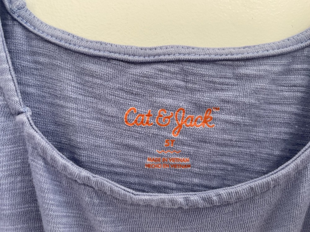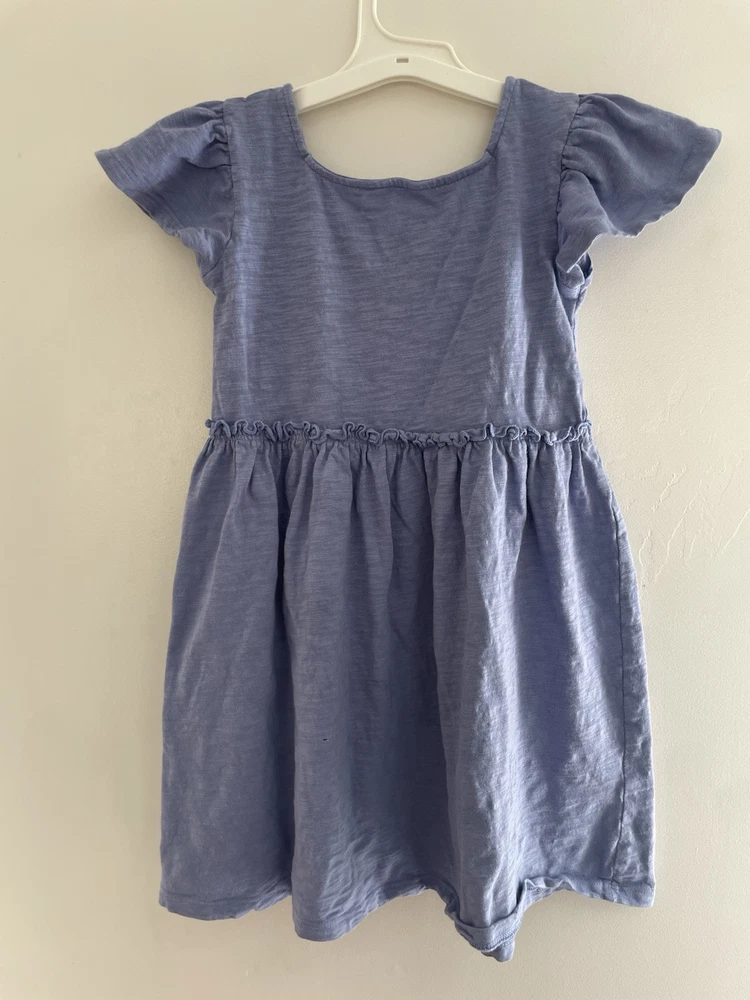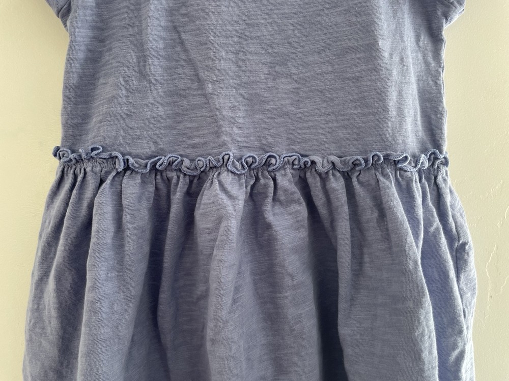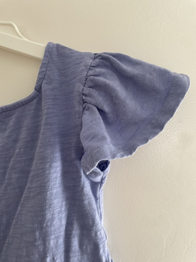 Cat & Jack Toddler Girls Ruffle Cotton Flutter Short Sleeve Dress Periwinkle 5T. Condition is pre-owned. Smoke free, pet free home. Shipped via USPS Ground Advantage. In very good condition. There is a small hole in the back. Free of stains.