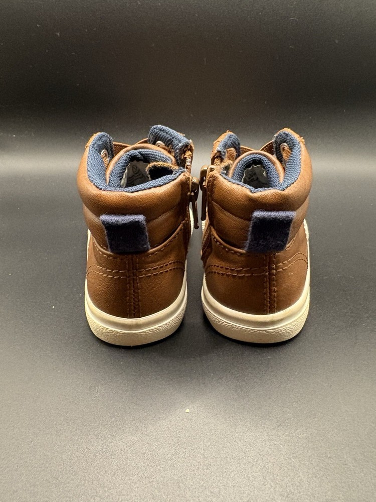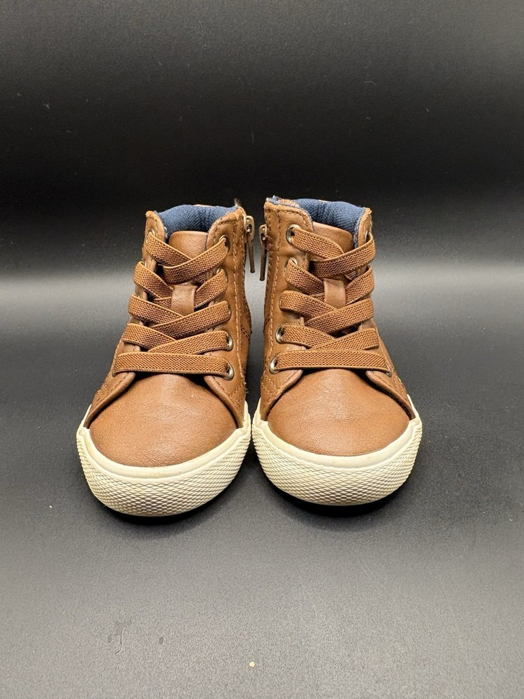 The Cat & Jack size 5 Toddler Boy Shoe is a stylish and practical choice for your little one. Featuring a solid brown color with a strap accent, these casual sneakers are perfect for everyday wear during the summer, fall, and spring seasons. Made of faux leather, they offer comfort and durability for walking activities. The brand Cat & Jack is known for its quality, making these shoes a reliable option for your toddler boy's wardrobe.