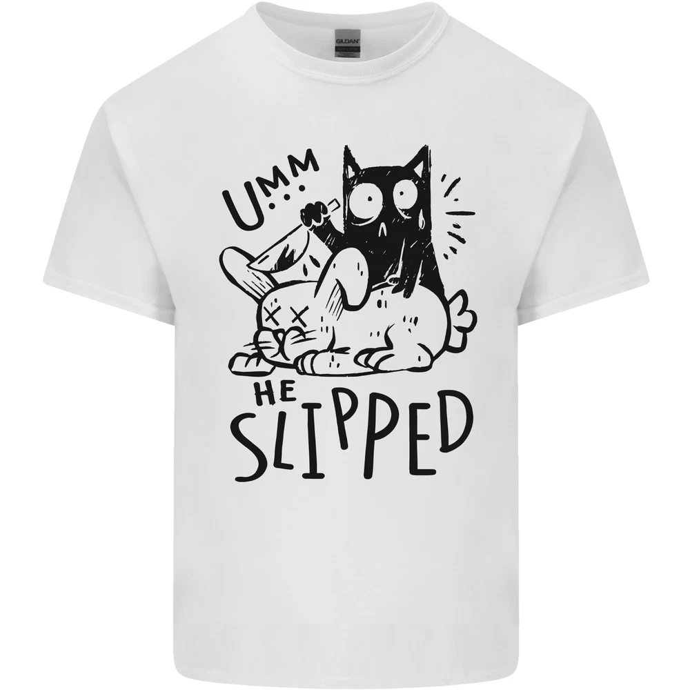 Cat Kills Dog He Slipped Funny Mens Cotton T-Shirt Tee Top