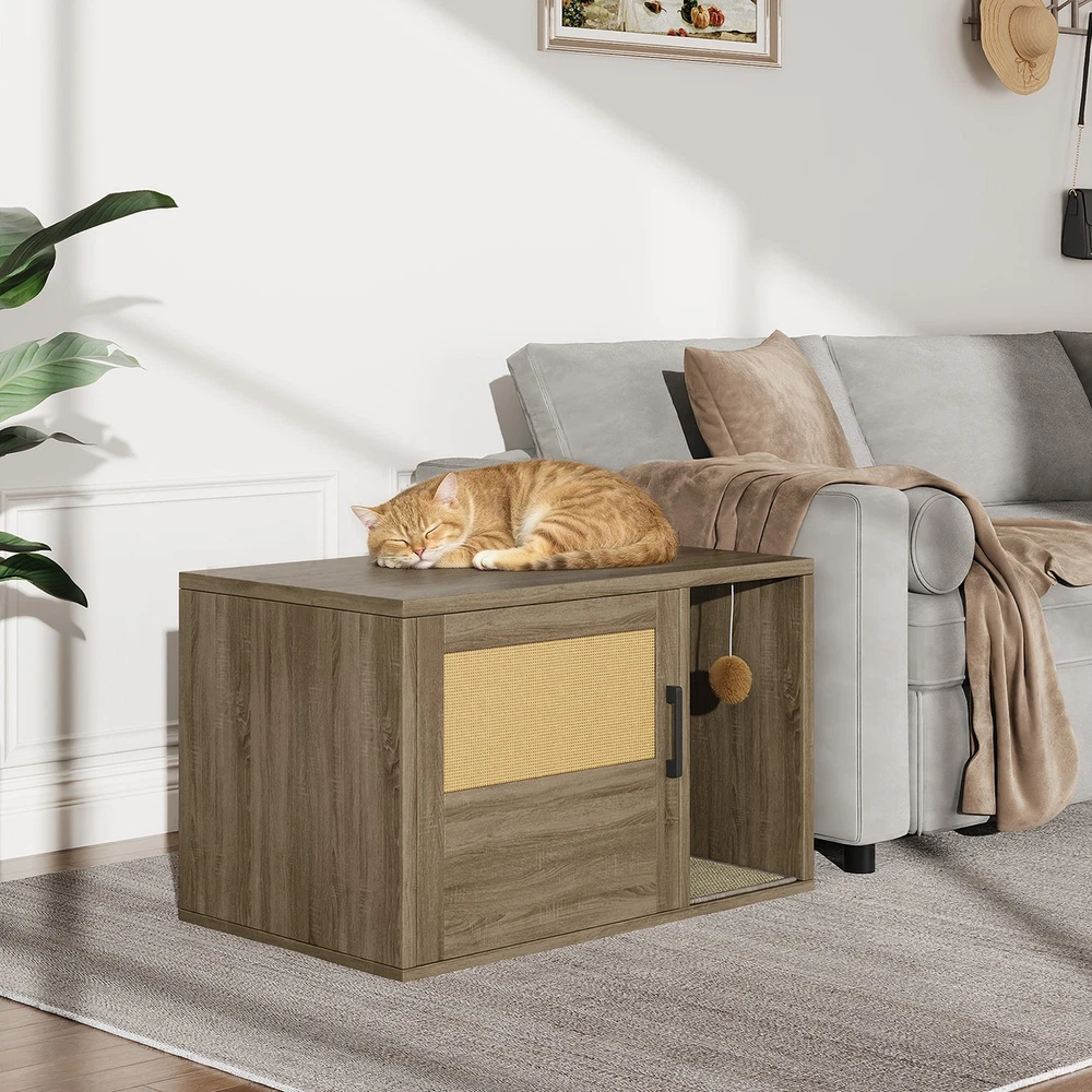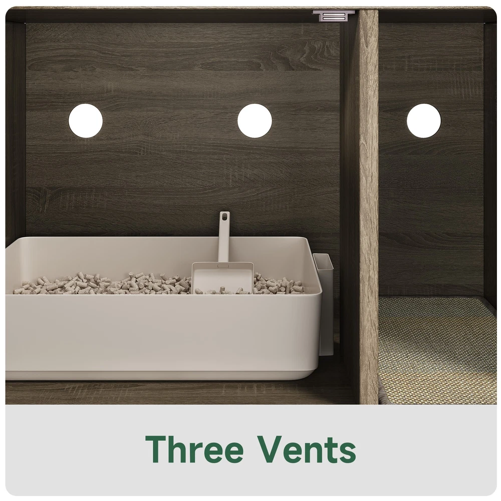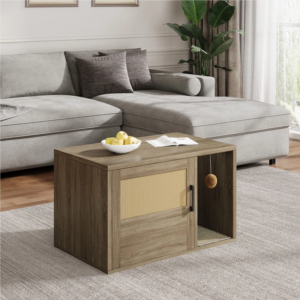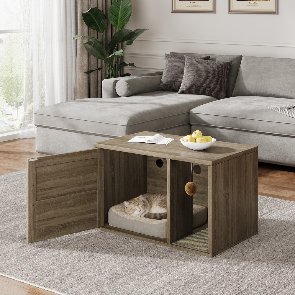 Feature: 1. Multifunctional Design: Used as a litter fence or house for your cat. It can also serve as a stylish side table, suitable for placing books, crafts, or other items, combining functionality and style seamlessly. 2. Odor Control: This cat litter box furniture is designed to provide your cat with a private metabolism space, helping to control odors and suitable for most litter boxes, ensuring a fresher home environment. 3. Entertainment Needs: The entrance of this enclosed cat litter box features a scratching pad, allowing cats to enjoy their nature scratching instinct as they enter. 4. Sturdy and Stable: Made of high grade chipboard and premium metal frame, the cat litter box is more durable and secure, ensuring high safety standards. 5. Easy to Assemble: Clear instructions, assembly tutorials, and all necessary tools are included in the package for easy installation in a short amount of time, with minimal assembly difficulty. Specification: Item Type: Cat Litter Box Enclosure Size: Approx. 80x50x50cm / 31.5x19.69x19.69in Material: Particle Board Door Number: 1 Package List: 8 x Boards 1 x Pad 14 x Accessory Pack 1 x User Manual Note: