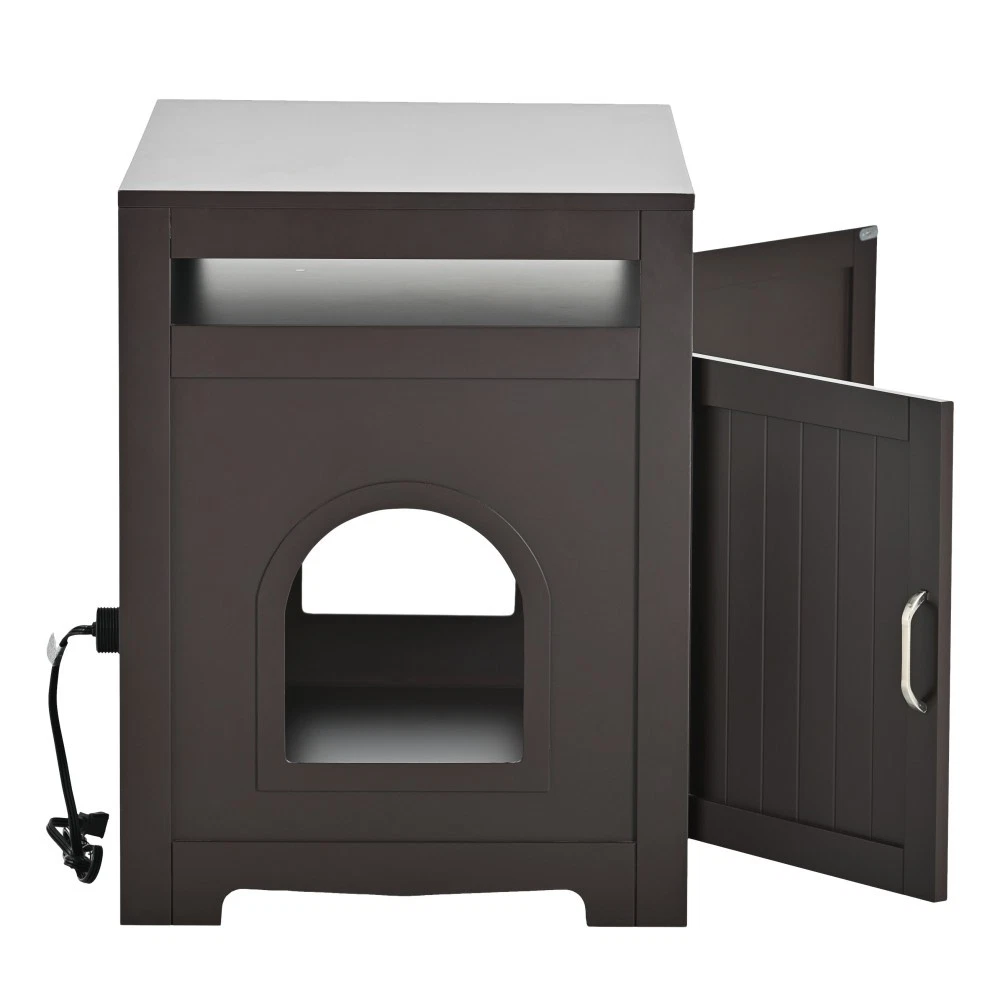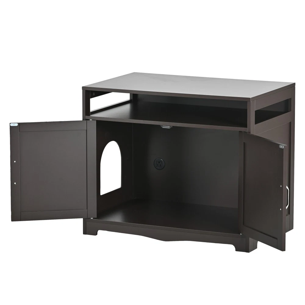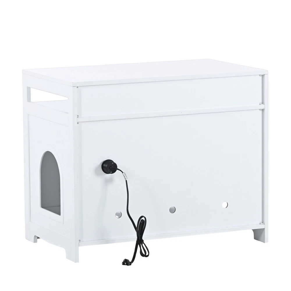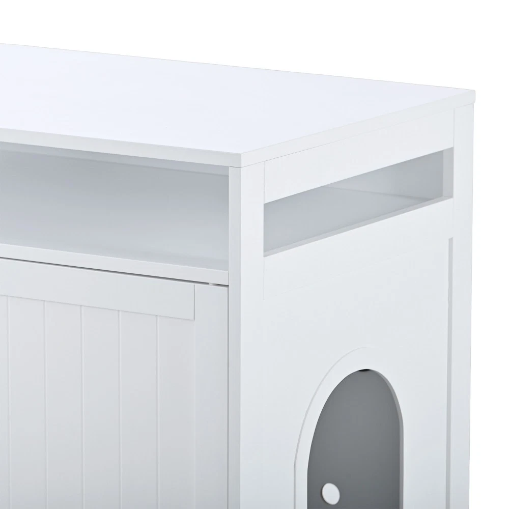 Cat Litter Box Enclosure Furniture (White/Walnut) - Multi-Functional Hidden Litter Box House with Built-in Plug, 2 Doors, Storage Bench & Side Table for Indoor Cats ✨ Elevate Your Home & Pamper Your Feline Friend! ✨ Tired of unsightly litter boxes ruining your home decor? Our Large Wooden Litter Box Enclosure is the perfect solution—blending seamlessly with your interior while providing a private, comfortable space for your cat. With built-in storage, a convenient plug, and dual entrances, it’s designed for both you and your furry companion’s ultimate convenience. 🌟 Key Features All-in-One Multi-Functional Design : Hides your cat’s litter box neatly, creating a private potty area. Equipped with an internal plug, you can easily place an air purifier to keep the space fresh and odor-free. It also doubles as a cozy cat house for napping, a storage cabinet for pet snacks/toys, and even a stylish side table or nightstand—maximizing space utilization in your home. Spacious Storage & Tabletop : Features 2 magnetic doors and an internal empty shelf, plus a wide tabletop—plenty of space to store cat food, toys, litter scoops, or display your small home decor. Keep your living space organized and clutter-free. Premium Material & Sturdy Construction : Crafted from high-quality MDF boards with exquisite craftsmanship, this enclosed litter box house is durable, wear-resistant, and deformation-proof—able to withstand cats climbing up and down. The countertop and bottom cabinet support up to 80 lbs, while the internal shelf holds up to 40 lbs, ensuring long-lasting use. Dual Entrances for Ventilation & Accessibility : Two kitty-sized holes on both sides allow your cat to come and go freely. These openings also promote excellent ventilation to reduce odors and let soft light in, creating a comfortable environment for your cat. Additionally, they effectively prevent dogs from accessing the litter box. Three small holes on the back panel further enhance light penetration for a brighter interior. Easy Assembly & Maintenance : The MDF boards feature UV painting, making cleaning a breeze—just wipe with a damp cloth. Comes with a detailed, step-by-step assembly instruction manual, so you can put it together easily and enjoy the fun of building a special space for your feline friend. Magnetic doors open and close smoothly for convenient access to clean the litter box. 📐 Product Specifications Parameter Details Color White / Walnut (Please select your preferred color) Material High-Quality MDF Assembled Dimensions 31.50" (L) x 20.00" (W) x 26.00" (H) Product Weight 46.30 LBS Package Dimensions 35.83" (L) x 22.44" (W) x 5.71" (H) Package Weight 51.26 LBS Origin China 🛡️ Trusted After-Sales Guarantee We stand behind the quality of our products! Enjoy 1-Year Quality Warranty and 30-Day Free Return & Exchange policy. If you have any questions about assembly, use, or product quality, please feel free to contact us—our professional customer service team will respond to you within 24 hours and provide you with a satisfactory solution. 📦 What You Get 1 x Cat Litter Box Enclosure (All Parts Included) 1 x Detailed Assembly Instruction Manual Add this versatile litter box enclosure to your cart today—give your cat a private, comfortable space and keep your home clean and stylish!