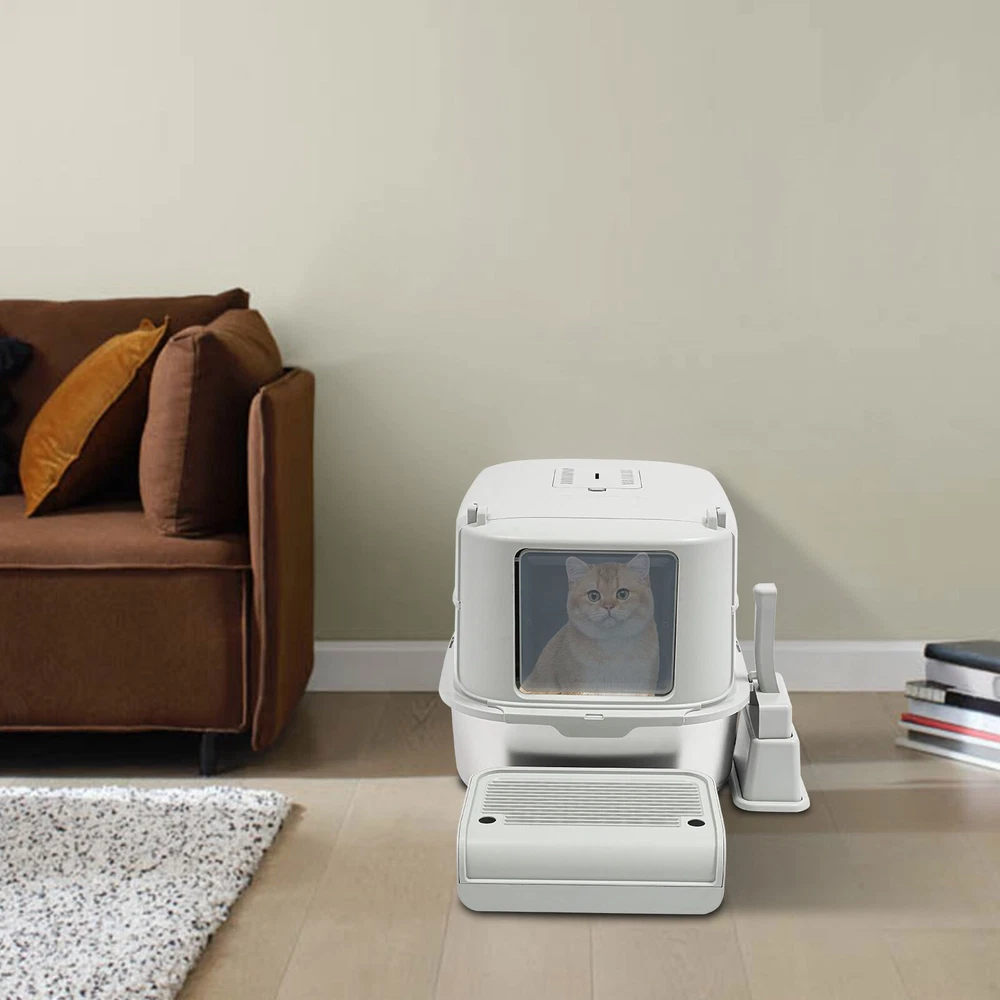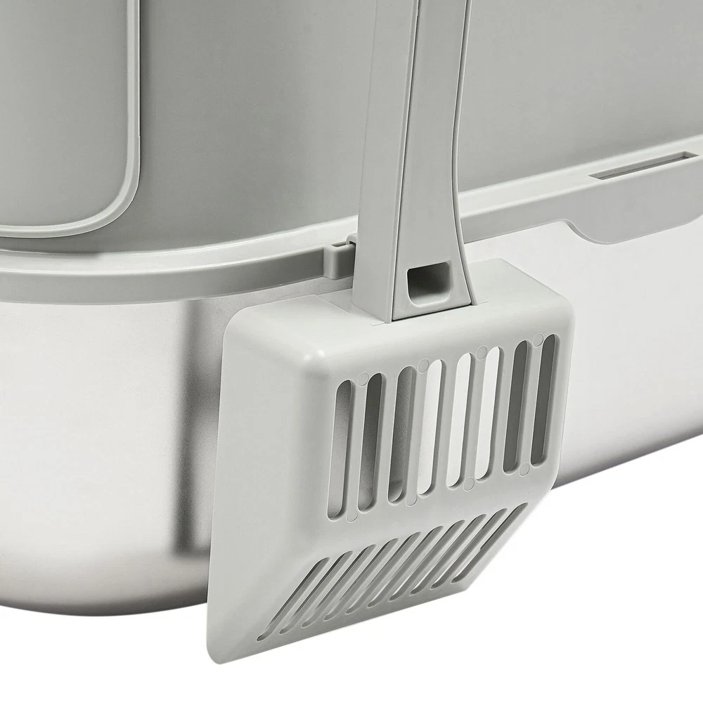 Cat Litter Box Large Litter Box for Big Cats Cat Litter Box with High Sides Description Description Are you looking for a cat litter box that can provide a comfortable and convenient experience for your cat? Then do not miss this! Its large capacity not only provides your cat with a spacious interior but also relieves your daily cleaning chores. Take it home now and enhance your cat's toilet experience! Key Features Last for Years: Made of excellent stainless steel , PP, and ABS, it is rustproof, wear-resistant, and impact-resistant, with a strong load-bearing capacity and high durability, not easy to deform, to ensure your long-term use. Large Capacity: The large 18.16-quart capacity litter pan allows you to add a large amount of litter at one time, which will last your cat roughly 30 days, effectively reducing the number of times you have to add litter and giving you peace of mind when you leave the house. Thoughtful Design: The built-in inverted plate and unique snap design with overlapping edges effectively prevent urine from leaking through the cracks, and also solve the problem of scattering cat poop when your cat digs. A sturdy 4.72-inch high-sided middle shell and a 5.12-inch top cover can 360° protection against litter splatter. An anti-splash pedal also prevents litter from being carried out by your cat and it features a raised design, making it ideal for short-legged and senior cats. User Friendly: It features an easy-to-assemble, 3-tier removable structure and is available in fully enclosed and semi-enclosed configurations. The fully enclosed setup prevents the spread of odors, effectively stops urine leaks, and provides privacy for your cat. The enclosed setup promotes ventilation, making it easier for you to clean. It features a deodorizing compartment for a bamboo charcoal bag (not included) to quickly absorb odors. Effortless Cleaning: The stainless steel litter pan's simple design makes it easy to rinse with water. In addition, the litter scoop allows you to scoop away cat poop quickly and easily. The inside of the footrest can hold a litter bag (not included), making it easy to remove loose litter and keep your floors clean and tidy. Assembly in a Breeze : The simple structure, complete accessories, and detailed English manual help you to assemble it quickly and firmly without easily falling off. Elegant Appearance: With a light gray cover and a silver basin, the overall look is low-key and stylish, adding elegance to home decoration. Multifunctional: The stainless steel pan has sturdy construction and seamless design, which is not easy to break and leak, so you can use it as a cat's bathtub, saving you money and time on additional purchases. Ideal Gift: Beautiful appearance and good practicality make it a great gift. You can give it to your family, friends, colleagues, etc. who have a cat. Customer Service: We aim to provide quality products and services. If you have any problems, please feel free to contact us. We will reply and solve the problem for you as soon as possible. Details Non-slip Pads: They can hold the litter box stable on the floor and prevent it from shifting and scratching the floor. Shovel Box: It allows you to store the cat litter scoop after each use while making it quicker and easier to access next time. Practical Cat Litter Scoop: It can be hung on the litter box for easy access and to avoid loss. It has a fine mesh structure so that even the smallest cat litter particles can be easily removed without falling through. Smooth Edges: The smooth and round edges make the product comfortable to use without scratching your cat's skin during her toilet or your hands when you move it. Application It is suitable for cats up to 22.05 pounds and you can place it in your living room, balcony, bathroom, pet store, and other places for use. Specification Color: Light Grey, Silver Style: Modern Assembly Required: Yes Mount Type: Freestanding Material: Stainless Steel, PP, ABS Capacity: 20L/ 18.16Qt Applicable Cat Weight: Below 10kg/ 22.05lbs Pan Size: 58*43.2*15cm/22.83*17*5.91in Medium Shell Height: 12cm/4.72in Top Cover Height: 13cm/5.12in Inlet Height: 20cm/7.87in Package Size: 60*44*19cm/23.62*17.32*7.48in Gross Weight: 4.8kg/10.58lbs Net weight: 4.56kg/10.05lbs Package Included 1* Stainless Steel Pan 1* Footboard 1* Top Cover 1* Medium Shell 1* Cat Litter Scoop 1* Non-slip Foot Pad Sticker 1* Shovel Box 1* English User Manual Notes Please check the style and size before purchasing. Please read the manual completely before installation and use, and pay particular attention to the safety instructions included. Please note that cat litter is not included in this product. After use, please replace the cat litter promptly. If there are multiple cats at home, the replacement cycle for cat litter can be proportionally shortened, with one cat taking about 30 days and two cats taking about 15 days. Regularly add cat litter to the pan, keeping the litter thickness at around 30-40mm. Please allow the slight color difference caused by the shooting light and 1-3cm error due to manual measurement and make sure you do not mind before ordering. Payment Delivery details Terms of sales About us Contact us Payment We accept ebay payment 。 Fees such as import duties, taxes are not included in the item price or shipping costs. These charges are the buyer's responsibility. Delivery details Shipping: 2-9 working days to: USA Terms of sales We maintain high standards of excellence and strive for hundred percent customer satisfaction. Feedback is very important to us. We hope that you contact us immediately before you give neutral or negative feedback, so that we can address your concerns. It is impossible to address issues if we do not know about them! About us Your satis faction is our ultimate goal. We work hard to earn your trust and future business. Our certified technicians have tested each item before shipping. The unit comes with 1 year limited warranty on all manufactur