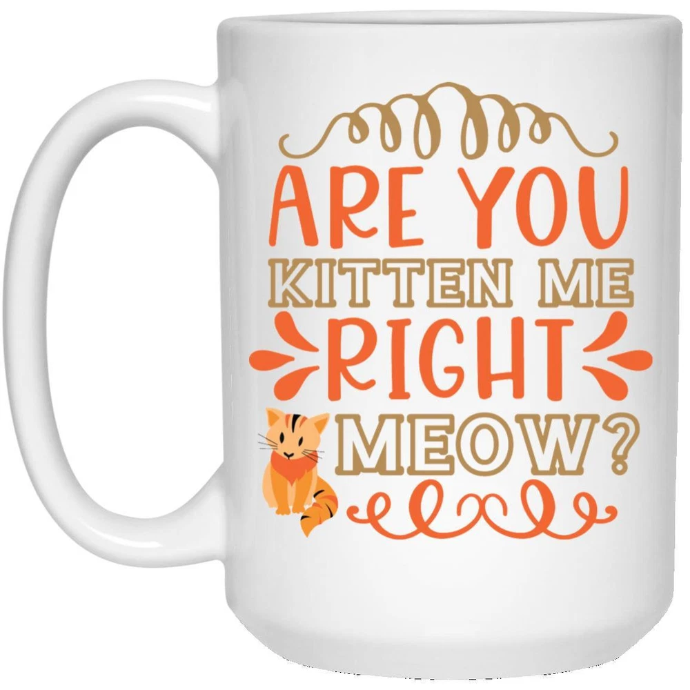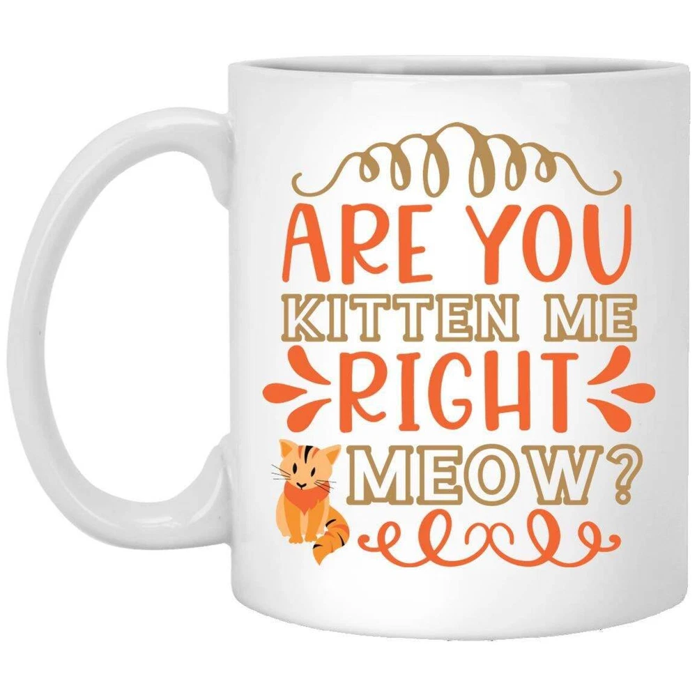 Cat Lover Coffee Mug Are You Kitten Me Right Meow Coffee Mugs Gift For Cat Product Details.. This high quality 11oz. ceramic white mug has a premium hard coat that provides crisp and vibrant color reproduction sure to last for years. Perfect for all hot & cold beverages. The highest quality printing possible is used. It will never fade no matter how many times you wash it. Material: 100% Ceramic. Print both sides. Dishwasher and Microwave Safe. High Gloss + Premium White Finish. Printed in the U.S.A. Personalized & Custom. We support personalized and custom mug to add custom, when placing an order, you can add notes to the "order note" in shipping address section. Also you can contact us directly via message. Shipping Info. Ready to ship in 1 to 2 business days, All products are made-to-order and proudly printed in the United States. Shipped by USPS and DHL, You will receive your order in 5-7 days. Replace & Refund. All products are defective during shipping broken, chipped will be replaced free of charge. You are not satisfied with the product, we will refund 100% money to you. If any other issues arise, please do not hesitate to message, we would be more than happy to assist you.