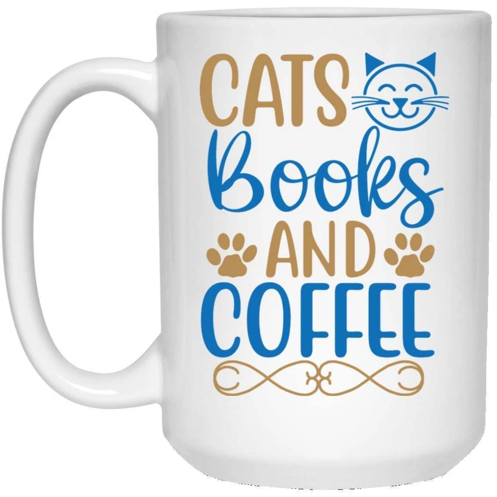 Cat Lover Coffee Mug Cats Books And Coffee Coffee Mugs Gift For Cat Owners Product Details.. This high quality 11oz. ceramic white mug has a premium hard coat that provides crisp and vibrant color reproduction sure to last for years. Perfect for all hot & cold beverages. The highest quality printing possible is used. It will never fade no matter how many times you wash it. Material: 100% Ceramic. Print both sides. Dishwasher and Microwave Safe. High Gloss + Premium White Finish. Printed in the U.S.A. Personalized & Custom. We support personalized and custom mug to add custom, when placing an order, you can add notes to the "order note" in shipping address section. Also you can contact us directly via message. Shipping Info. Ready to ship in 1 to 2 business days, All products are made-to-order and proudly printed in the United States. Shipped by USPS and DHL, You will receive your order in 5-7 days. Replace & Refund. All products are defective during shipping broken, chipped will be replaced free of charge. You are not satisfied with the product, we will refund 100% money to you. If any other issues arise, please do not hesitate to message, we would be more than happy to assist you.