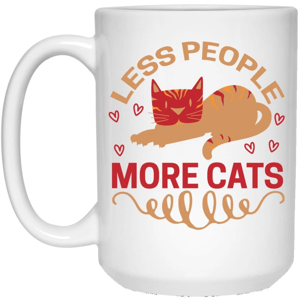 Cat Lover Coffee Mug Less People More Cats Coffee Mugs Gift For Cat Owners Product Details.. This high quality 11oz. ceramic white mug has a premium hard coat that provides crisp and vibrant color reproduction sure to last for years. Perfect for all hot & cold beverages. The highest quality printing possible is used. It will never fade no matter how many times you wash it. Material: 100% Ceramic. Print both sides. Dishwasher and Microwave Safe. High Gloss + Premium White Finish. Printed in the U.S.A. Personalized & Custom. We support personalized and custom mug to add custom, when placing an order, you can add notes to the "order note" in shipping address section. Also you can contact us directly via message. Shipping Info. Ready to ship in 1 to 2 business days, All products are made-to-order and proudly printed in the United States. Shipped by USPS and DHL, You will receive your order in 5-7 days. Replace & Refund. All products are defective during shipping broken, chipped will be replaced free of charge. You are not satisfied with the product, we will refund 100% money to you. If any other issues arise, please do not hesitate to message, we would be more than happy to assist you.