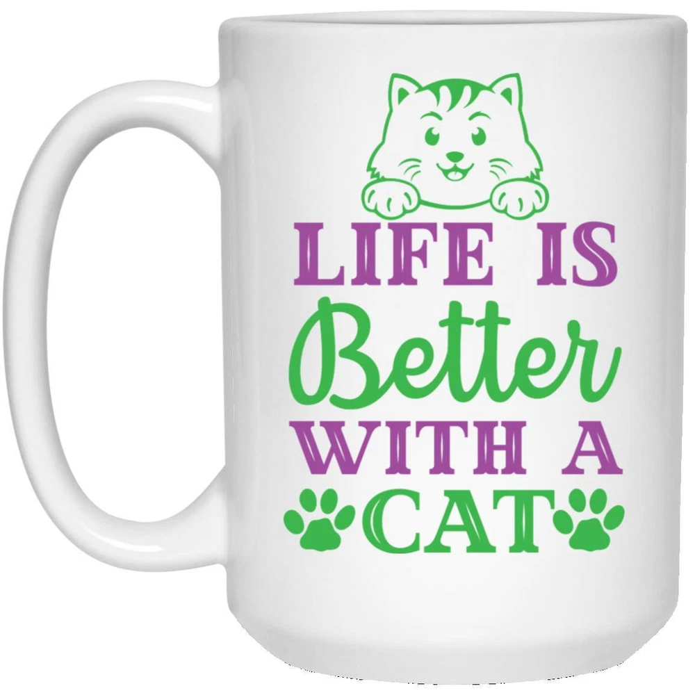 Cat Lover Coffee Mug Life Is Better With A Cat Coffee Mugs Gift For Cat Owners Product Details.. This high quality 11oz. ceramic white mug has a premium hard coat that provides crisp and vibrant color reproduction sure to last for years. Perfect for all hot & cold beverages. The highest quality printing possible is used. It will never fade no matter how many times you wash it. Material: 100% Ceramic. Print both sides. Dishwasher and Microwave Safe. High Gloss + Premium White Finish. Printed in the U.S.A. Personalized & Custom. We support personalized and custom mug to add custom, when placing an order, you can add notes to the "order note" in shipping address section. Also you can contact us directly via message. Shipping Info. Ready to ship in 1 to 2 business days, All products are made-to-order and proudly printed in the United States. Shipped by USPS and DHL, You will receive your order in 5-7 days. Replace & Refund. All products are defective during shipping broken, chipped will be replaced free of charge. You are not satisfied with the product, we will refund 100% money to you. If any other issues arise, please do not hesitate to message, we would be more than happy to assist you.