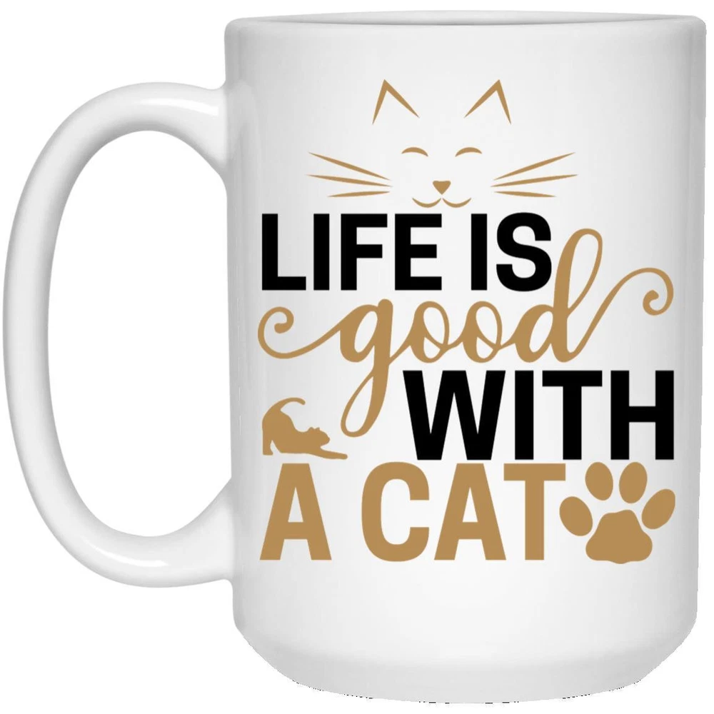 Cat Lover Coffee Mug Life Is Good With A Cat Coffee Mugs Gift For Cat Owners Product Details.. This high quality 11oz. ceramic white mug has a premium hard coat that provides crisp and vibrant color reproduction sure to last for years. Perfect for all hot & cold beverages. The highest quality printing possible is used. It will never fade no matter how many times you wash it. Material: 100% Ceramic. Print both sides. Dishwasher and Microwave Safe. High Gloss + Premium White Finish. Printed in the U.S.A. Personalized & Custom. We support personalized and custom mug to add custom, when placing an order, you can add notes to the "order note" in shipping address section. Also you can contact us directly via message. Shipping Info. Ready to ship in 1 to 2 business days, All products are made-to-order and proudly printed in the United States. Shipped by USPS and DHL, You will receive your order in 5-7 days. Replace & Refund. All products are defective during shipping broken, chipped will be replaced free of charge. You are not satisfied with the product, we will refund 100% money to you. If any other issues arise, please do not hesitate to message, we would be more than happy to assist you.