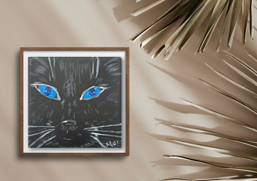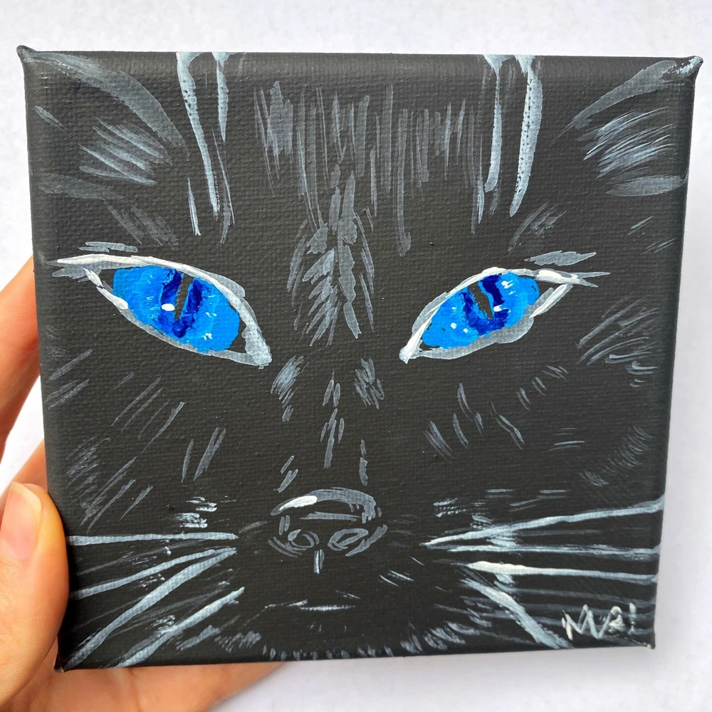 This beautiful black cat painting would be a great addition to your home decor and artwork collection. The painting is an original and would make a perfect gift for any cat lover. The painting is made by Margarita Voropay using acrylic paint and has a contemporary art and impressionist style. The painting features the portrait of a black cat and has been created on a canvas painting surface. The painting has been listed by the artist Margarita Voropay under the categories of Art and Paintings with the theme of Animal Wall Art. This painting is signed by the artist and is a unique item that will make any room it is displayed in more vibrant. Order yours today! Made to order! Cat Painting Pet Portrait ORIGINAL on Canvas Artwork Animal Wall Art Black Cat Art Acrylic Painting Mini Painting 5” by 5” / 13 x 13 cm I now have a finished painting in size 5” x 5” / 13 x 13 cm, Wall art Canvas Painting “Portrait Cat” Colorful: Black, Blue and White Original Artwork ABOUT THIS PAINTING: Portrait Cat, so cute! These Canvas Wall Art pieces are Bright, exciting, Colorful, & Fun colors! Fast Order Processing! Happy Shopping!