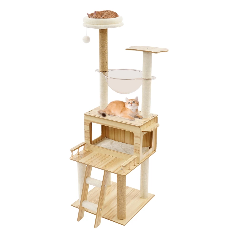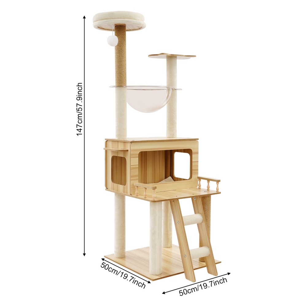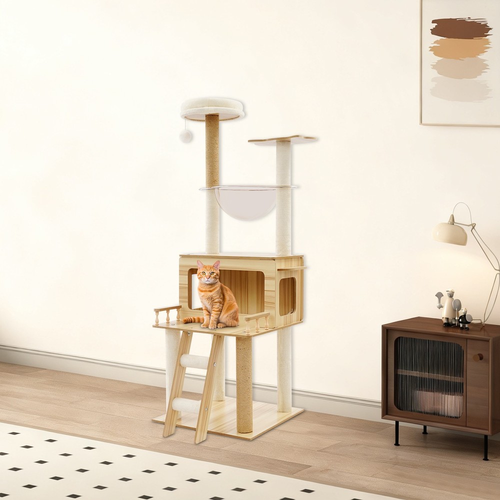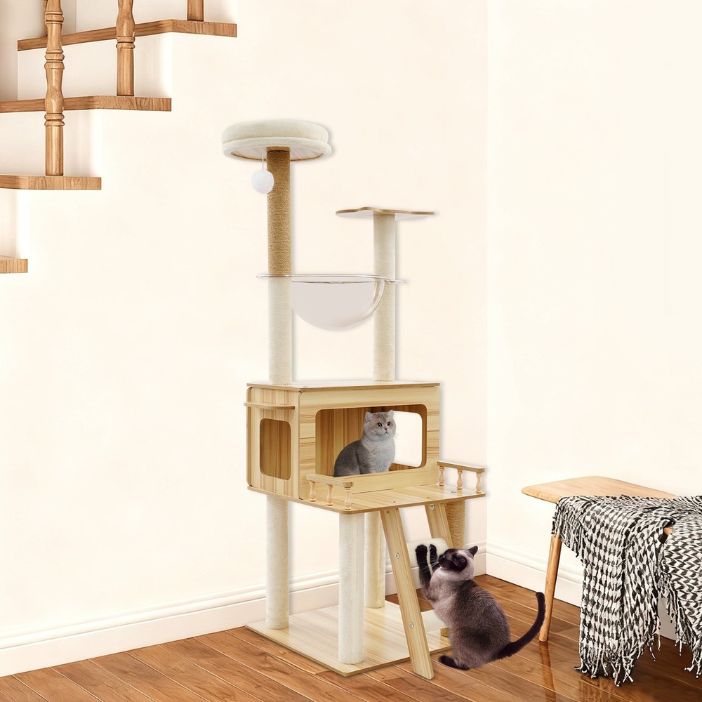 *WELCOME TO rongbigdealtrade - Your Trusted Destination!* Description This cat tree is made of premium materials for excellent durability. The rich structure is in line with cats' natural tendency to climb and jump, making it a good choice for cat activity centers. A comfortable cat house provides a warm resting space for your cat. It doesn't take up too much space for your cat to play comfortably. This cat tree adopts a three-dimensional interlocking fantasy structure, w hich greatly capture s the instinct of cats to ‘fly over the wall’! The climbing ladders, watchtowers, and cat houses are designed to meet the cat's instinctive needs for parkour, raiding, and climbing to the top, turning it into an exclusive sports paradise and hunting training ground for cats in minutes. This ‘happy tree’ occupies a small area, but can infinitely extend the dimension of a cat's joy in a limited space, so that even a small home can contain the entire universe of meow stars! Key Features Selected Materials: The premium veneered density boards, hemp ropes, flannelette, paper pillar, and plastic make it scratch-retardant, wear-retardant, terminal-retardant, and sturdy, providing a reliable place for cats to move and rest. Premium and Enduring: It is crafted from superior materials, including veneered density boards, hemp ropes, flannelette, paper pillar, and plastic, which ensures high strength and exceptional durability, and can prevent scratches or wear, offers robust sturdiness, and guarantees an extended lifespan. High Load-bearing Capacity: The thick rectangular base and sturdy columns ensure high load capacity (about 22.05 lbs) and excellent stability. It is not easy to wobble or tip over, even when cats jump freely on it. Sturdy Support You Can Trust: It has a strong load-bearing structure that allows larger cats up to 22.05 lbs to jump and climb, or for 3-4 smaller cats to play at the same time, creating an exclusive sturdy fortress for meowers. Whether it's a fat cat with a crazy output or an energetic kitten, this product will hold them all with confidence. Reasonable Design: The comfortable cat's house, clear space capsules, and multi-tier platforms allow your cat to rest and observe leisurely and comfortably while satisfying the cat's natural inclination to climb and jump. The scratching posts allow cats to sharpen their claws, preventing damage to furniture. A thoughtful hanging teaser ball allows cats to play happily and maintain a good mood. Exclusive Playground for Cats: The cosy cat house is like a nest in the clouds, where kittens can curl up into a ball of fur and start a cosy nap. T he clear capsule in the shape of a space capsule instantly transforms into a meow star's ‘observation box’, where the cat can lie down and overlook the daily life of human beings in 360°! The three-dimensional platform allows cats to unlock a variety of climbing and jumping positions. The paw pillar and climbing staircase are the ‘guardian knight’ of furniture to save your leather seats and curtains! It also has a sweet hanging teaser ball that swings with your cat's tap, instantly igniting the predatory nature and allowing your pet to play alone at home. Space-saving: It has a small footprint( 19.7*19.7 inches) and adopts a vertical design that won't take up too much space. You can place it freely in your room, living room, or balcony. Effective Use of Space: It makes full use of vertical space and reduces the footprint(19.7*19.7 inches) by increasing the height(57.9in). The three-dimensional structure allows it to become a ‘sky observation deck’ in the living room, or to be transformed into a ‘sunny cottage’ for cats on the balcony, providing multi-layer activity space for cats without taking up much space. Easy to Assemble: The simple structure, mortise and tenon joint construction, pre-drilled holes, a detailed English installation step-by-step diagram, and complete accessories allow you to quickly assemble it and start u sing it. Quick Setup: With its ingeniously simple design, mortise and tenon joint construction, precision pre-drilled holes, a clear step-by-step English assembly guide, and complete essential components neatly included, you’ll have it up and running quickly! Details Smooth Edges: This design can better protect the skin of your cat. Skin-friendly Edges: Smooth, rounded edges elevate the product’s style while safeguarding against sharp corners, making it both beautiful and safe to use. Slip-repellent Pads: They can be attached to the bottom of the base to prevent sliding and improve its stability in use. Grip-Locked Foot Pads: It is designed with efficient slip-repellent feet that can firmly grip the ground and provide stability for product use, making cats experience a truly solid sense of security. Application It is suitable for families, pet stores, cat coffee bars, living rooms, bedrooms, balconies, and other places where cats can interact and rest. Package Included 1* Cat Tree 1* English Diagram Other Accessories for Assembly Notes Please use it within the load-bearing range of the product. Please carefully check the size of the product you need before purchasing. Please allow the slight color difference caused by the shooting light and the 1-3cm error due to manual measurement, and make sure you do not mind before ordering. Payment Delivery details Terms of sales About us Contact us Payment We accept ebay payment 。 Fees such as import duties, taxes are not included in the item price or shipping costs. These charges are the buyer's responsibility. Delivery details Shipping: 2-9 working days to: USA Terms of sales We maintain high standards of excellence and strive for hundred percent customer satisfaction. Feedback is very important to us. We hope that you contact us immediately before you give neutral or negative feedback, so that we can address your concerns. It is impossible to address issues if we do not know about them! About us Your satis factio