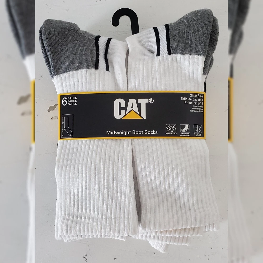CATERPILLAR ORIGINAL MIDWEIGHT BOOT SOCKS MEN'S 6 PAIRS SHOE SIZE 8-12 WHITE. Condition is "New with tags". -COMFORT WELT -SPORT RIB LEG -ACHILLES HEEL CUSHION -CUSHION SOLE -TOE CAP CUSHION -BREATHABLE AIR CHANNELS -COMFORT TOE SEAM