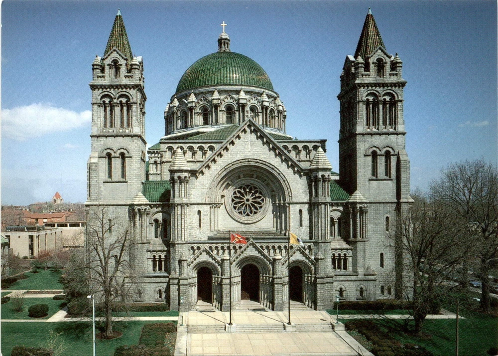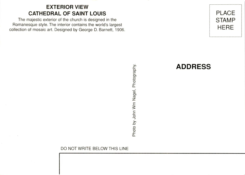 MAKE AN OFFER. THE MORE YOU BUY THE BETTER DEAL I WILL ACCEPT The postcard features an exterior view of the Cathedral of Saint Louis, known for its majestic Romanesque style architecture. Designed by George D. Barnett in 1906, the cathedral boasts the world's largest collection of mosaic art inside. The Cathedral of Saint Louis is located in St. Louis, Missouri, and is a prominent landmark in the city. St.