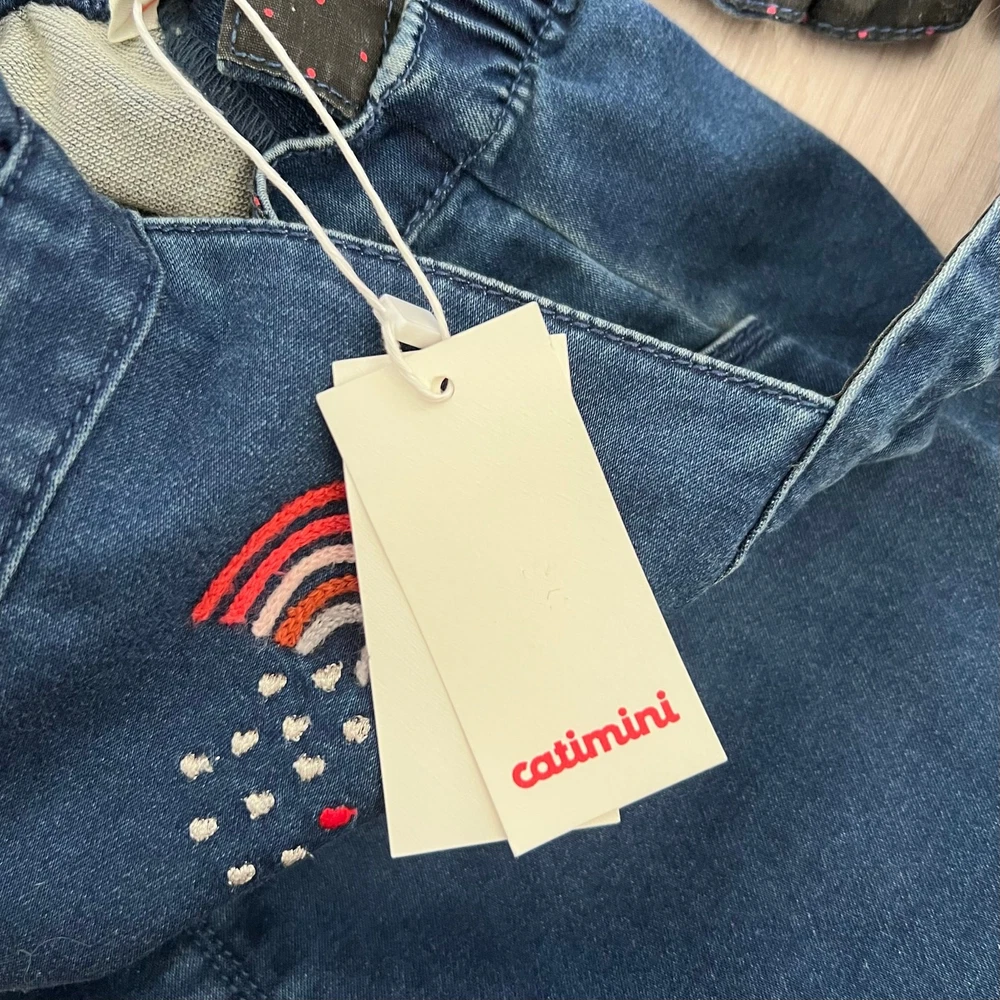 DESCRIPTION Adorable Catimini girls stretch denim overalls with ruffle straps and a colorful embroidered rainbow detail. Features an elastic waistband, adjustable straps, and functional pockets for comfort and style. Crafted from a soft cotton blend with stretch for easy movement. Perfect for casual wear, playdates, or photo sessions. Styling suggestion: Pair with a long sleeve tee and sneakers for a playful everyday outfit, or layer over a ruffle blouse for a dressier look. Details: • Brand: Catimini • Size: 3 • Color: Blue Denim • Material: 72% Cotton, 23% Polyester, 3% Viscose, 2% Elastane • Style: Overalls / One Piece • Features: Ruffle straps, embroidered rainbow, adjustable straps, elastic waist, pockets • Closure: Button straps • Fit: Regular • Pattern: Solid denim with embroidery • Occasion: Casual, Play, Photography • Season: All Seasons • Condition: New with tags • Style aesthetics: playful, cute, whimsical, colorful, casual, comfy, modern, photo-ready Ships fast! Clean, smoke-free, pet-friendly home. Bundle to save!