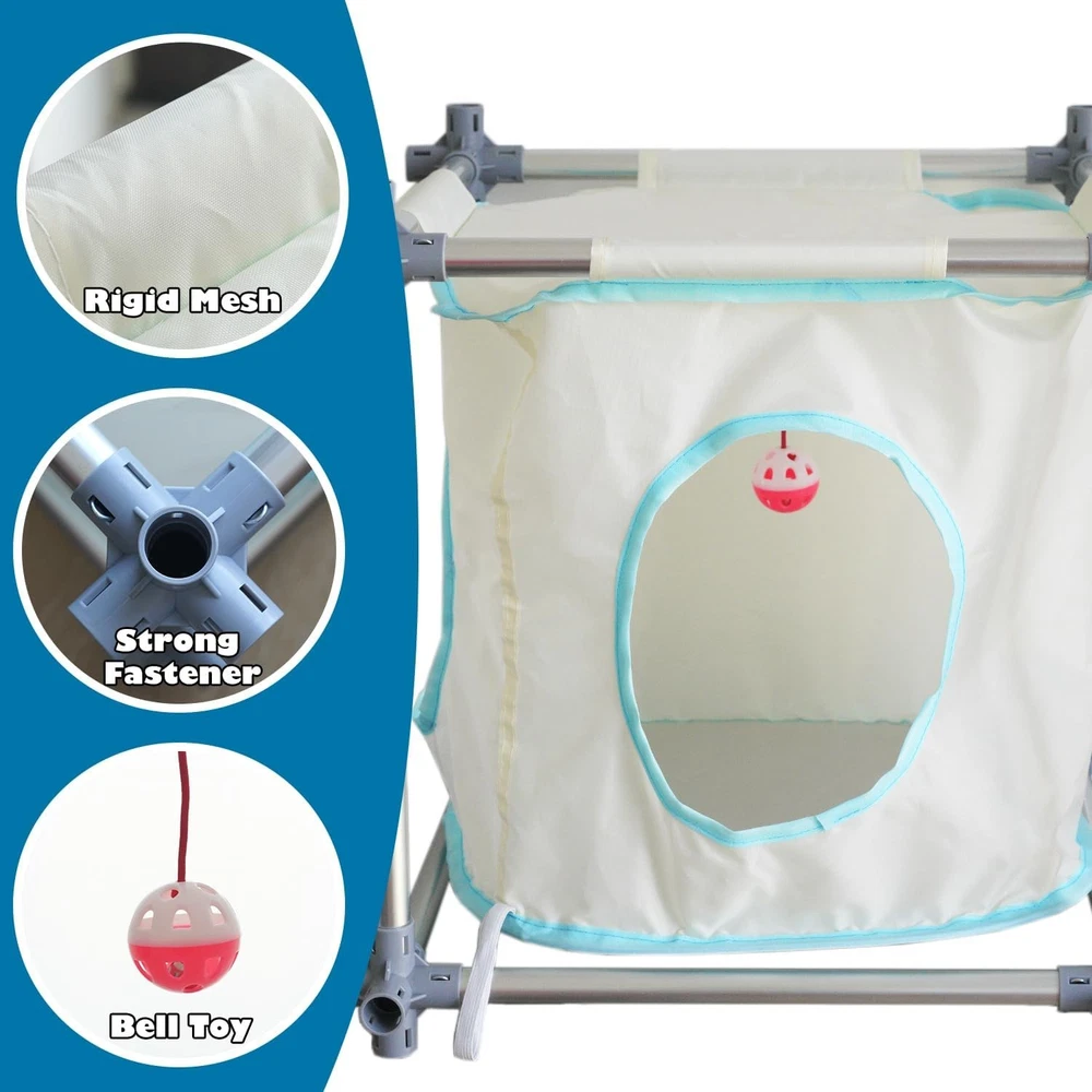 About this item SPACIOUS DESIGN : Ideal for multi-cat households, the Mega Kit offers ample room to run, hide, and play. With dimensions of 47.2 x 47.2 x 31.5(in), it’s a comfortable haven for your feline friends. MODULAR DESIGN : Our Mega Kit features a modular design, allowing you to mix and match different components to create a unique and personalized cat haven. Tailor the setup to your cats’ preferences and watch them explore their one-of-a-kind space. DURABLE CONSTRUCTION : Crafted from sturdy nylon mesh and robust aluminum pipes, this catio ensures long-lasting durability and stability. CONVENIENT MULTIPLE ENTRANCES : The Mega Kit features multiple entrances, allowing your cats to come and go independently, promoting exercise and playtime. SAFETY & FUNCTIONALITY : Our Catio provides a secure outdoor experience while safeguarding your cats from potential hazards. It’s the perfect blend of safety and fun. › Color: Mega Kit Brand: Material: Aluminum, Nylon, Plastic Product Dimensions: 47"L x 47"W x 31"H Style: Modern