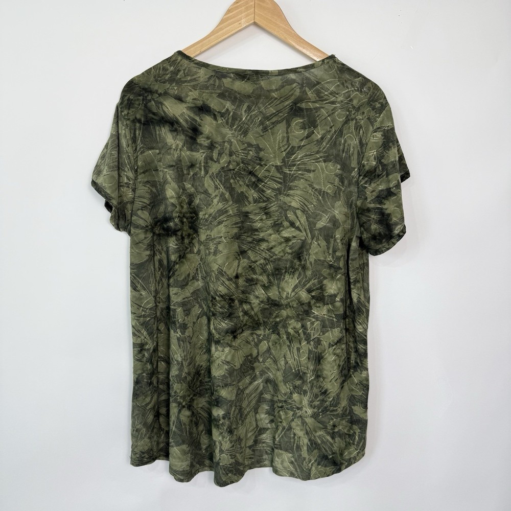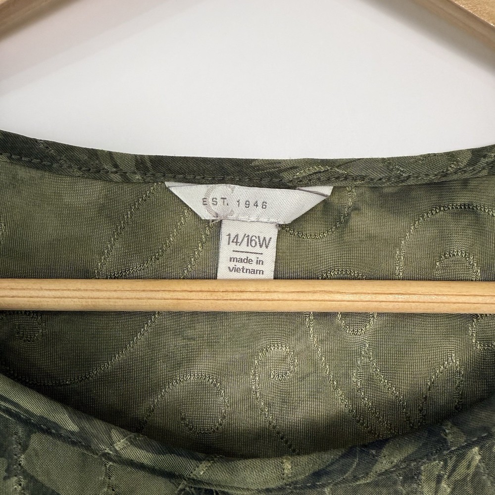 Cato Top Size 14/16W Green Tulip Sleeves Earthy Abstract Boho Hippie Casual Stretchy Condition: Great pre-owned condition. No rips, stains, or holes. Care instructions: Hand wash. Written measurements provided in photo. Measurements taken with garment lying flat. Fit tip: Compare the measurements of this item with those of a well-fitting garment that you currently own. Additional measurements available upon request. Next business day shipping! Thank you for supporting small business!